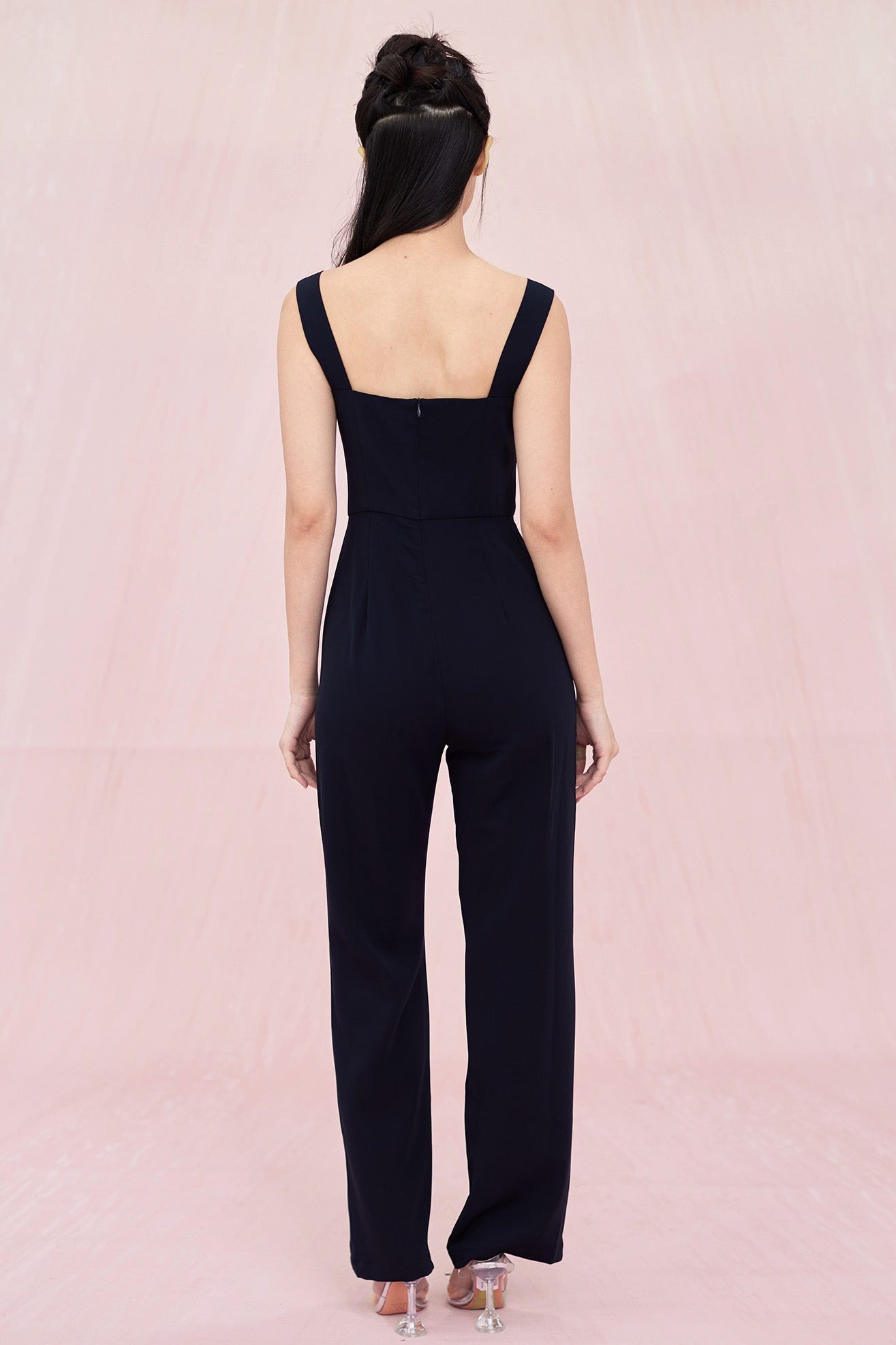 Introducing our Cera Dusty Navy Padded Jumpsui — a versatile and sophisticated piece that seamlessly blends comfort with style. This jumpsuit features a classic V-neck detailing, offering a flattering silhouette that stands the test of time.