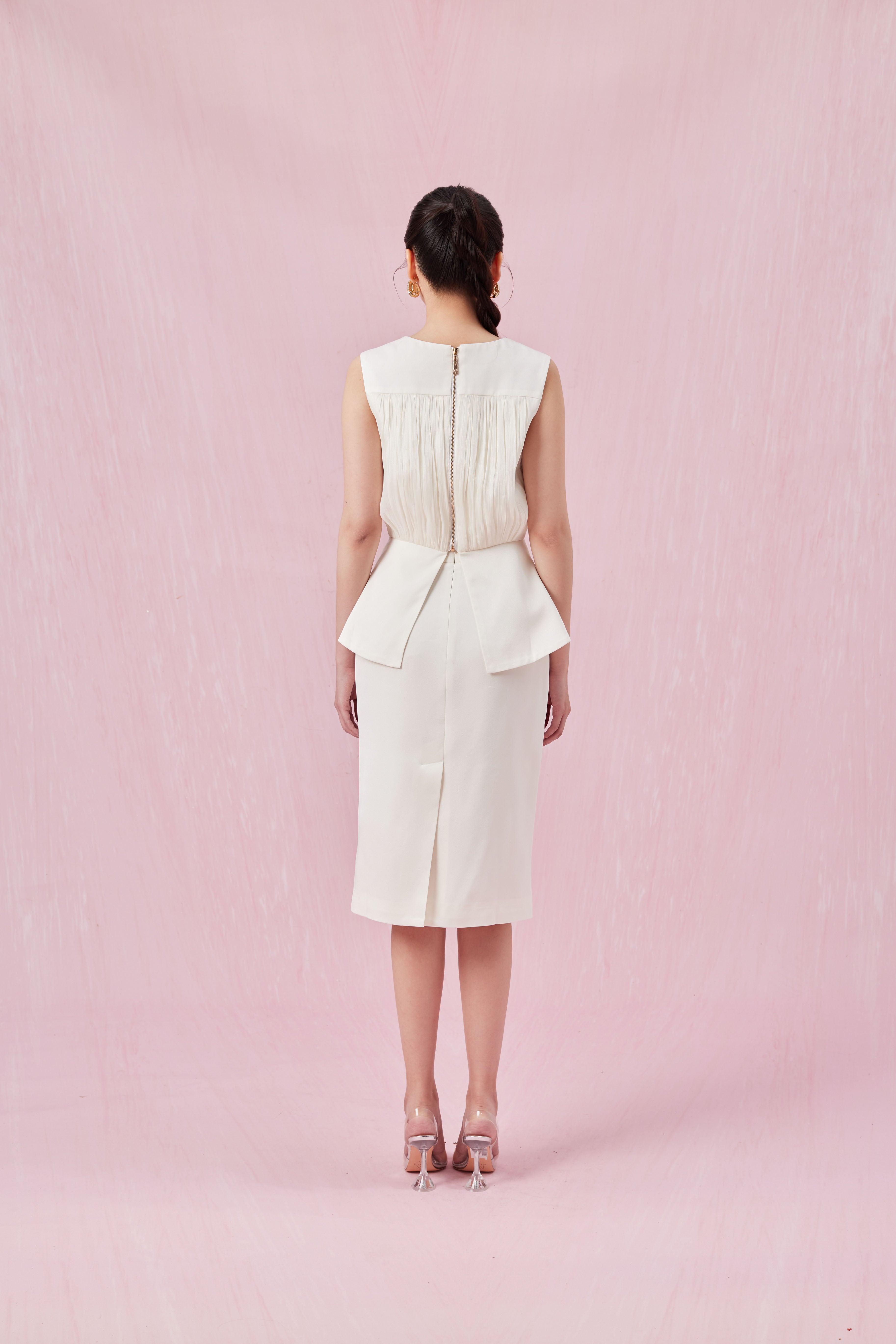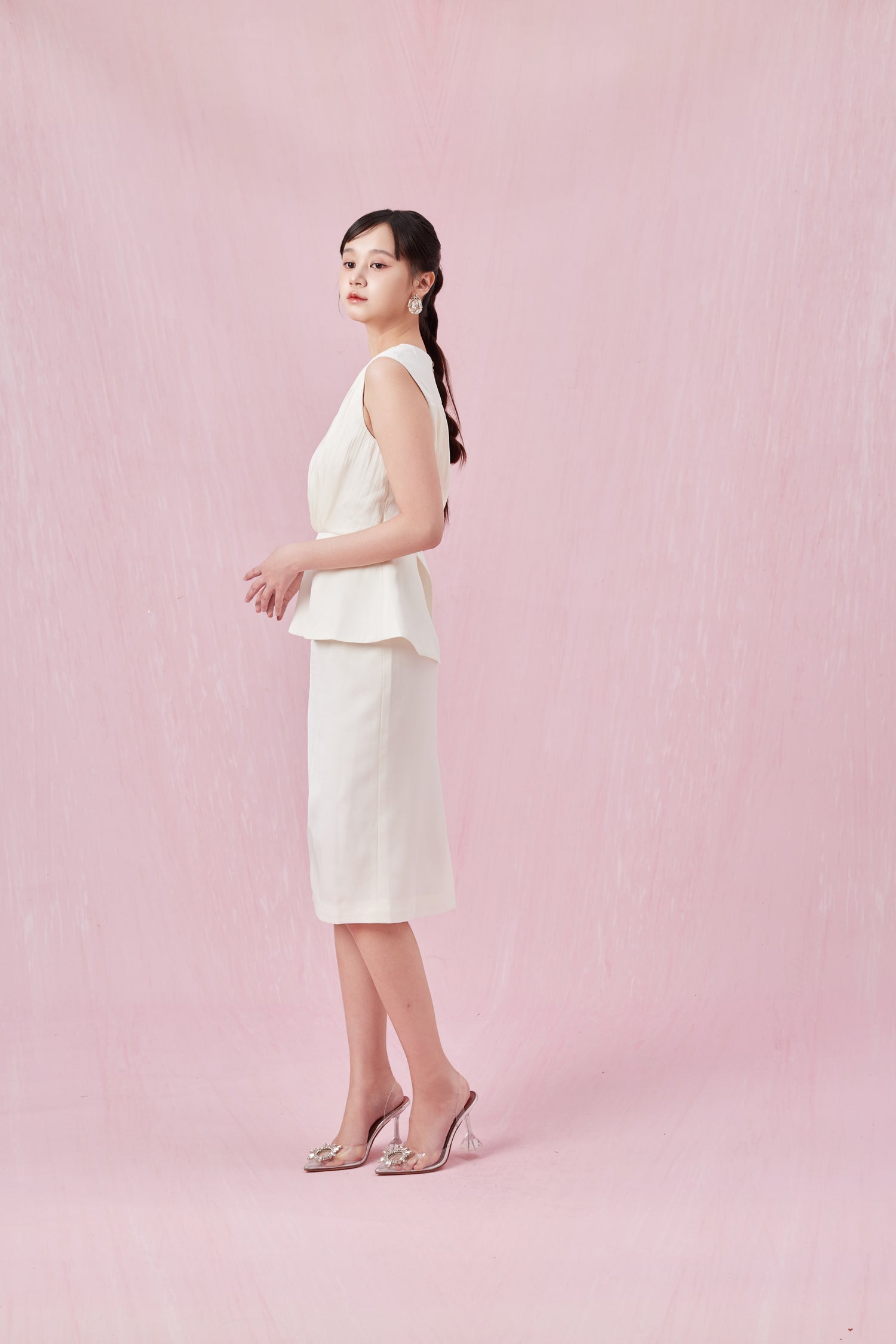 Add a staple of sophistication to your wardrobe with our Chantea Cream A-Line Skirt, meticulously tailored from luxurious crepe fabric. This essential piece combines timeless elegance with modern comfort, perfect for versatile styling in both professional and formal settings.