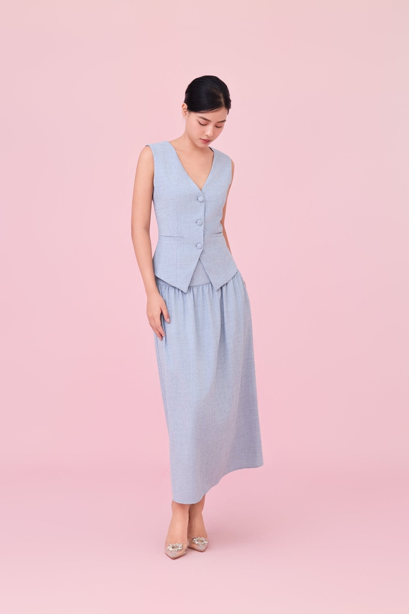 Effortlessly feminine, our Cheerish Light Blue A-Line Skirt features a thick waistband with delicate gathers that create a flattering, structured silhouette. Its flowing shape and comfortable fit make it perfect for both casual and dressy occasions.