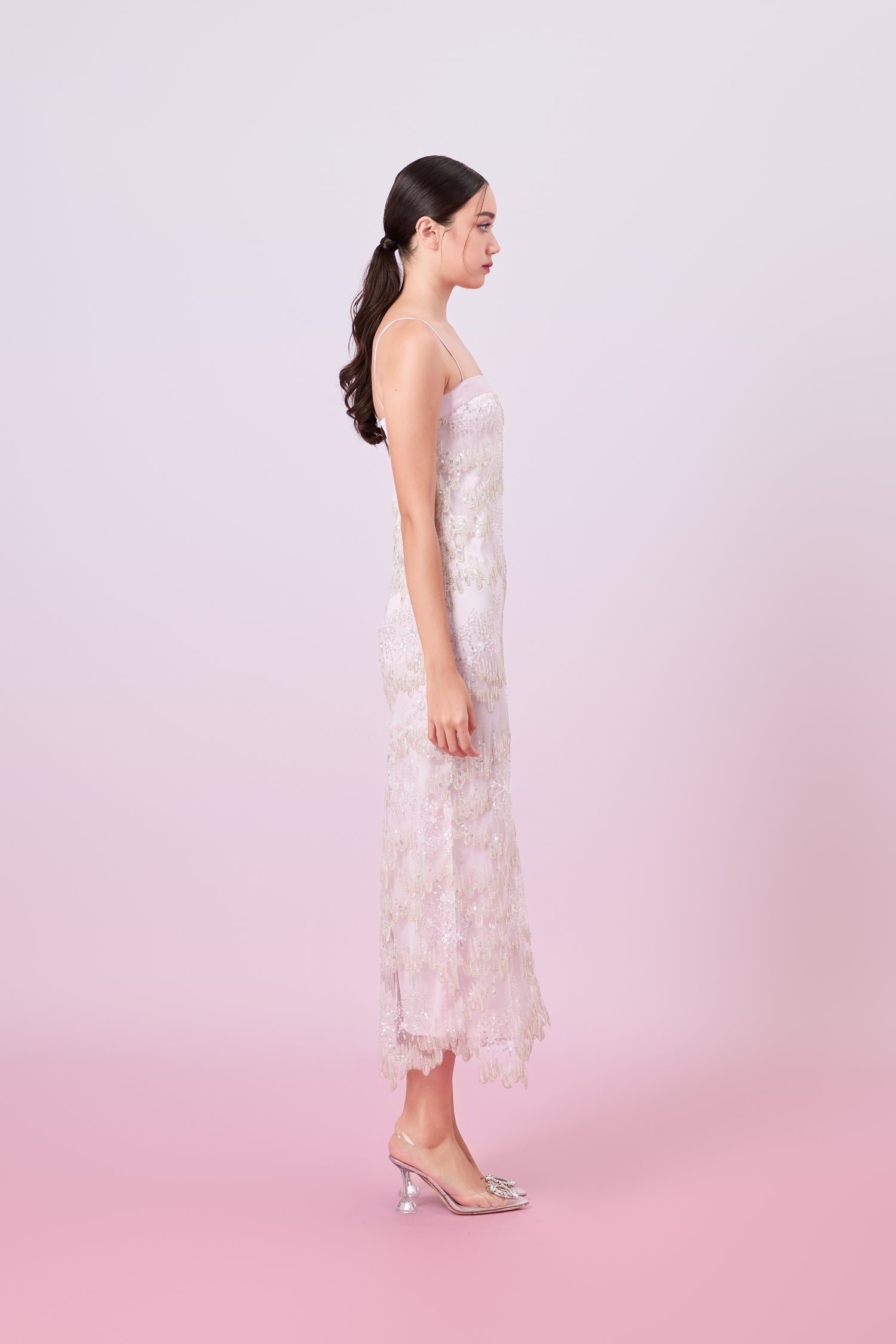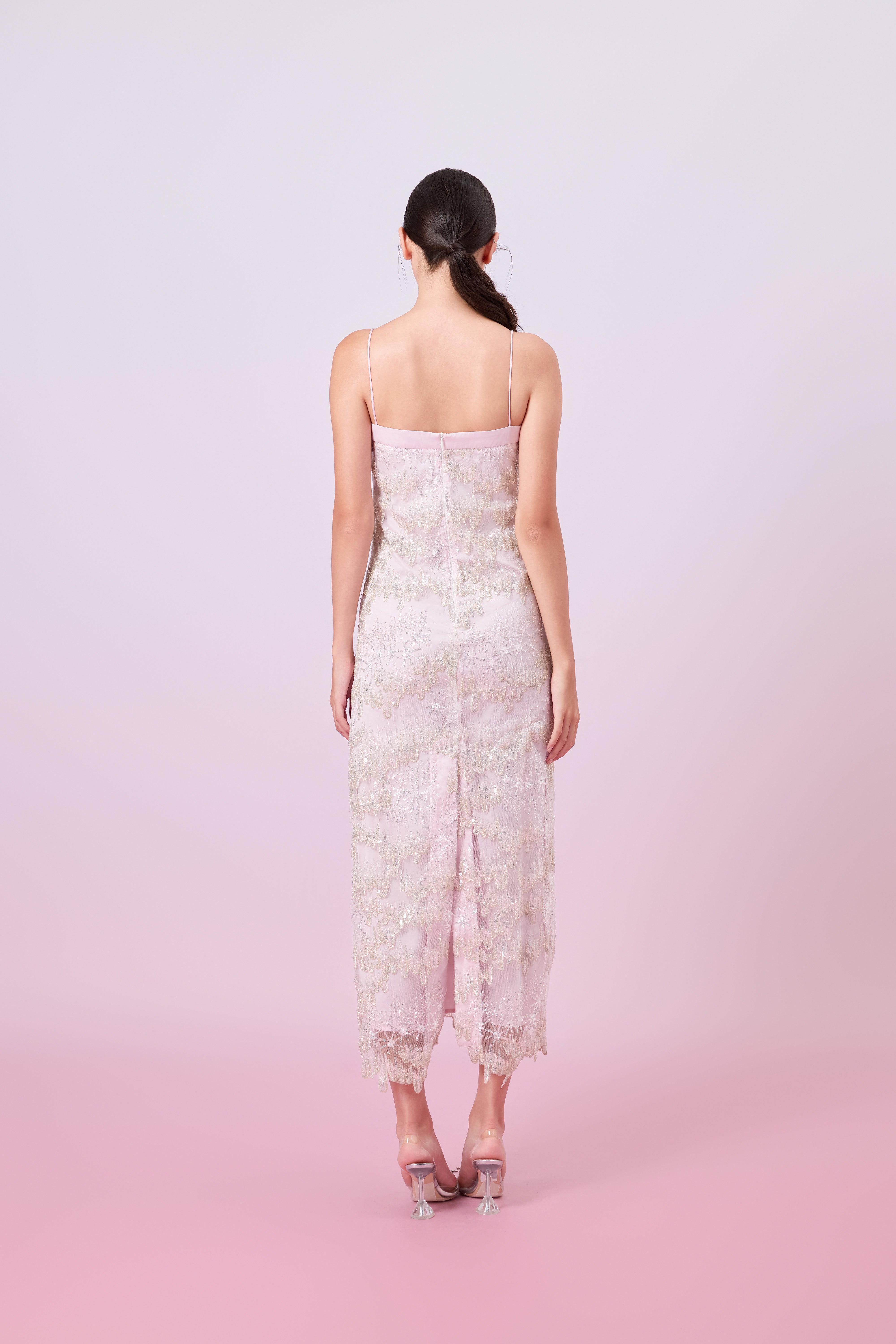 The Gabriellen Pink with Sequins Column Dress is a simple yet glamorous piece, featuring a straight-cut silhouette and delicate spaghetti straps. Crafted from sequin fabric, this dress catches the light beautifully, making it perfect for evening events or special occasions.