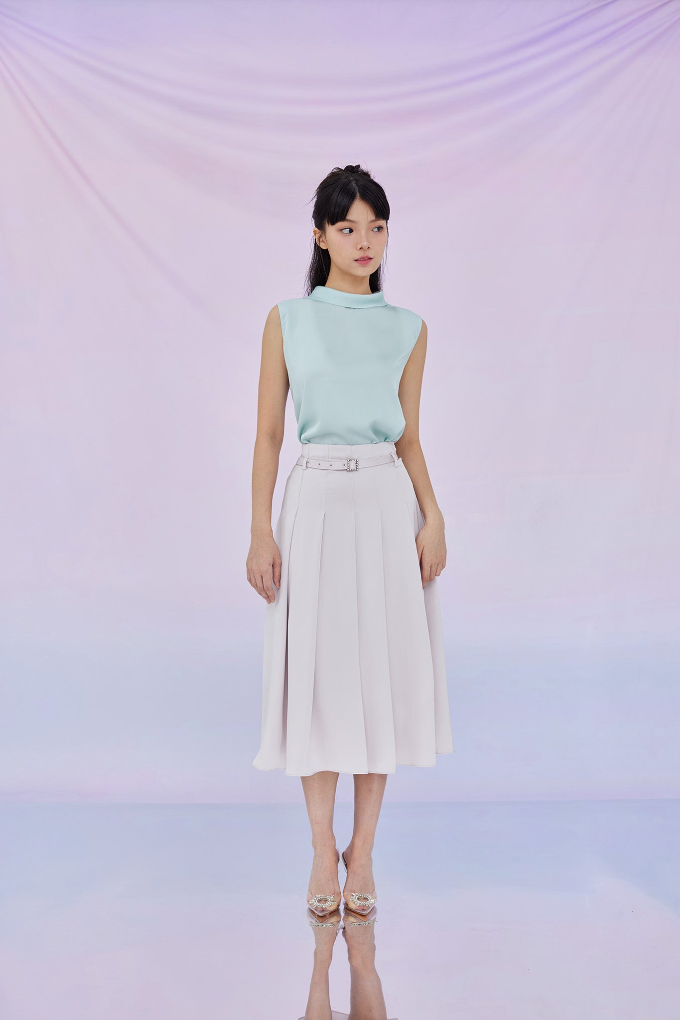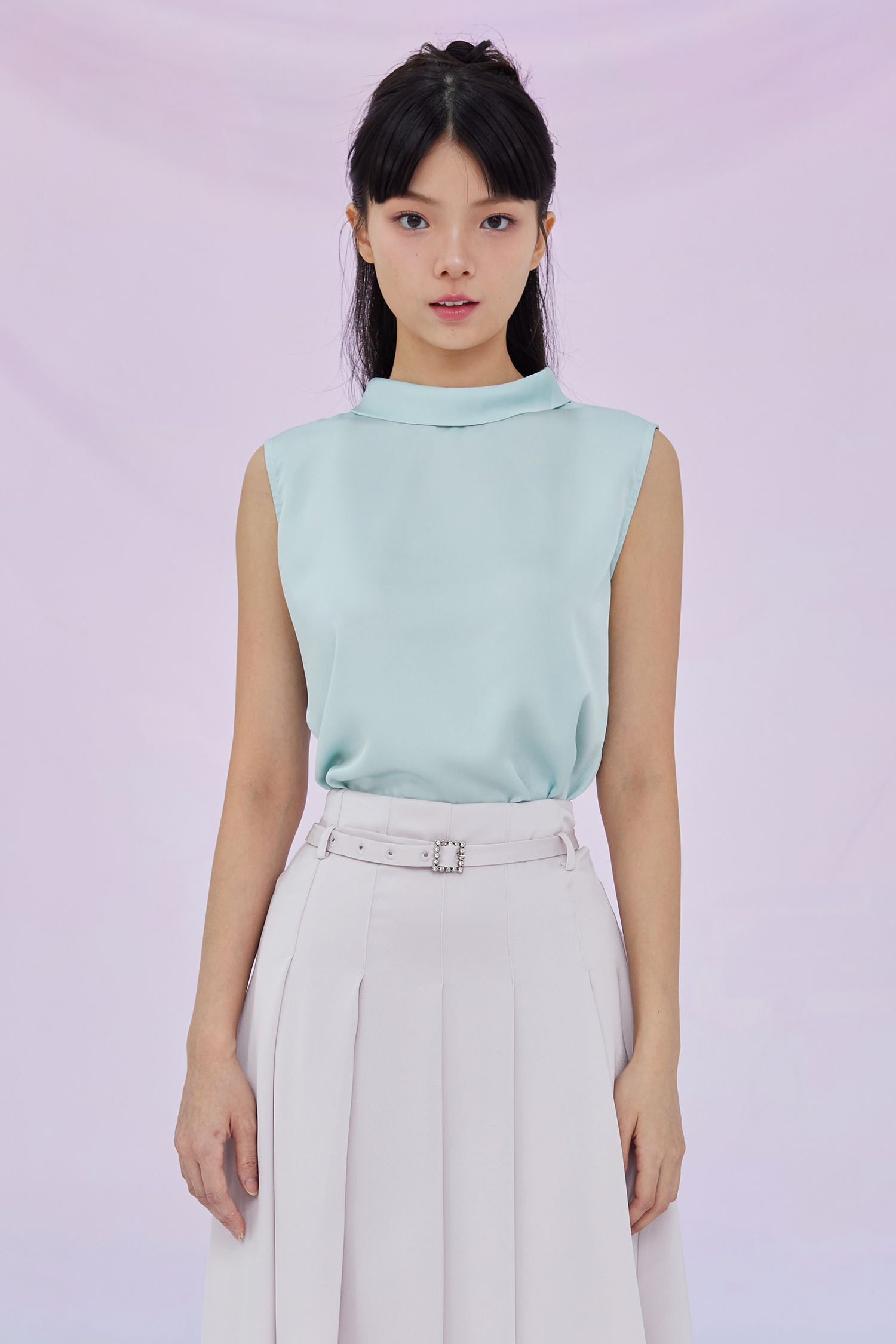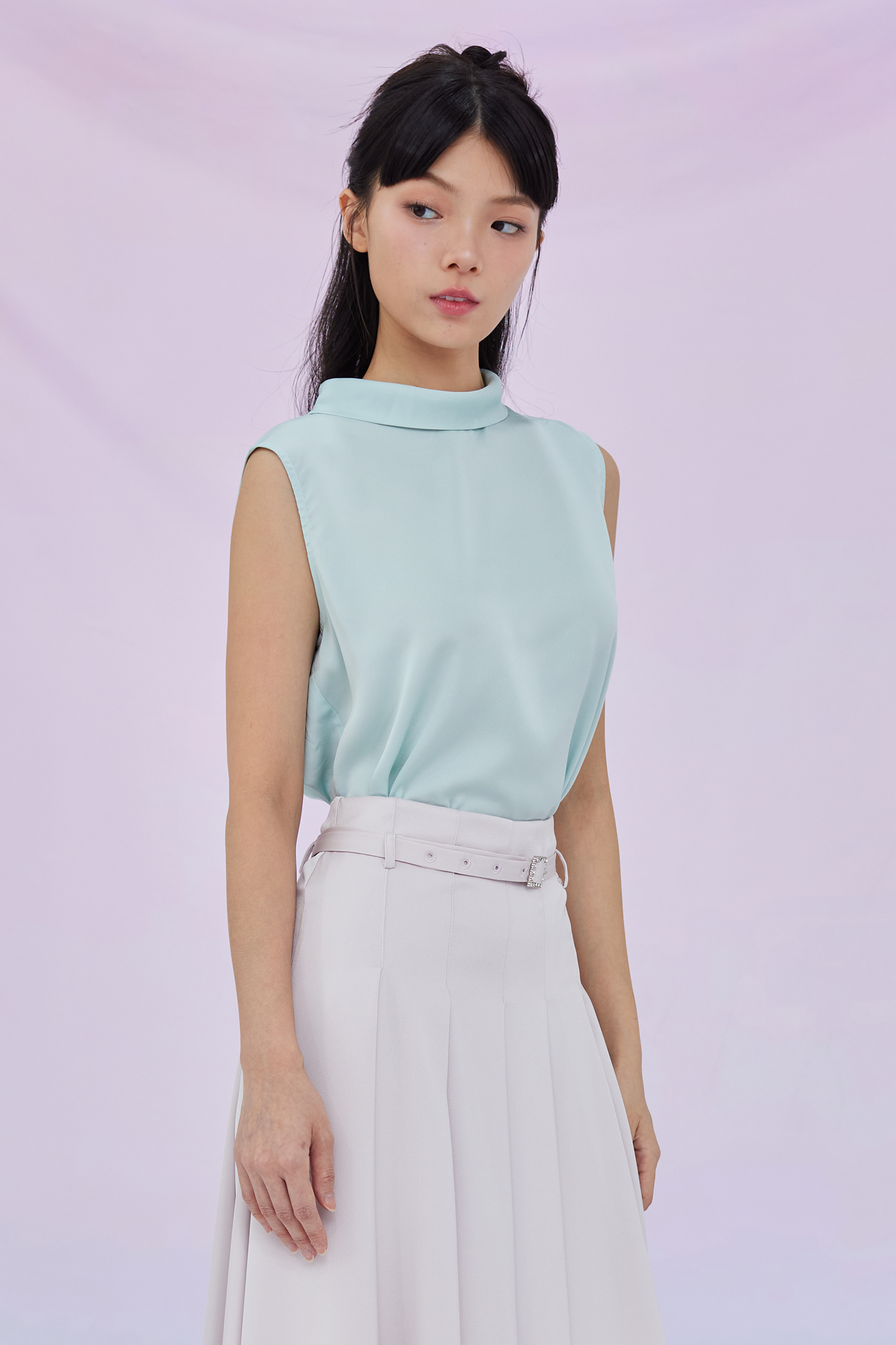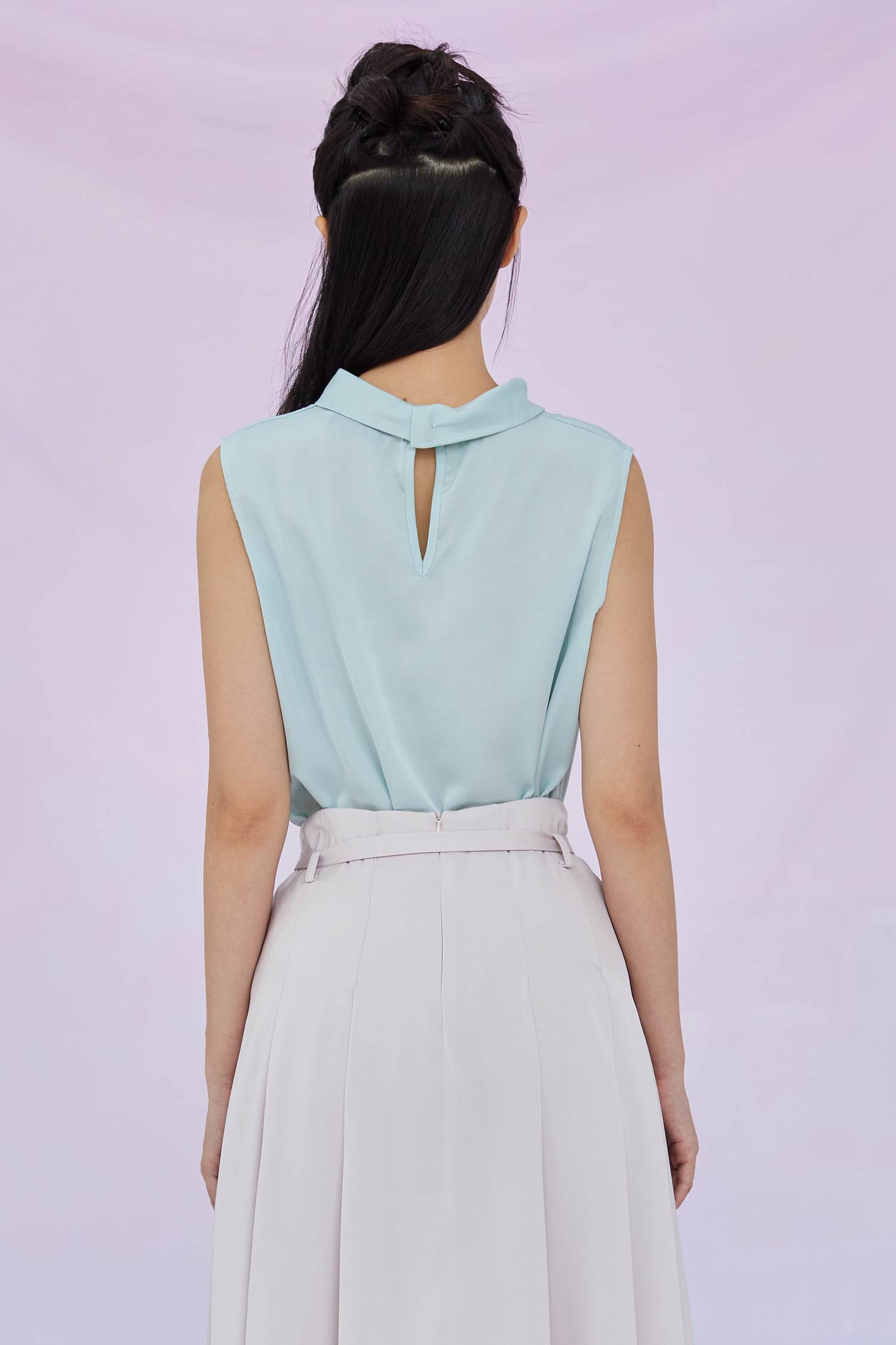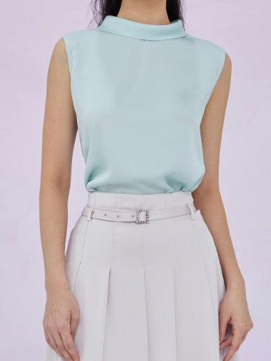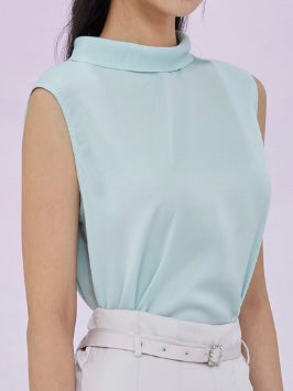 Gardenia Green Tie Neck Sleeveless Top