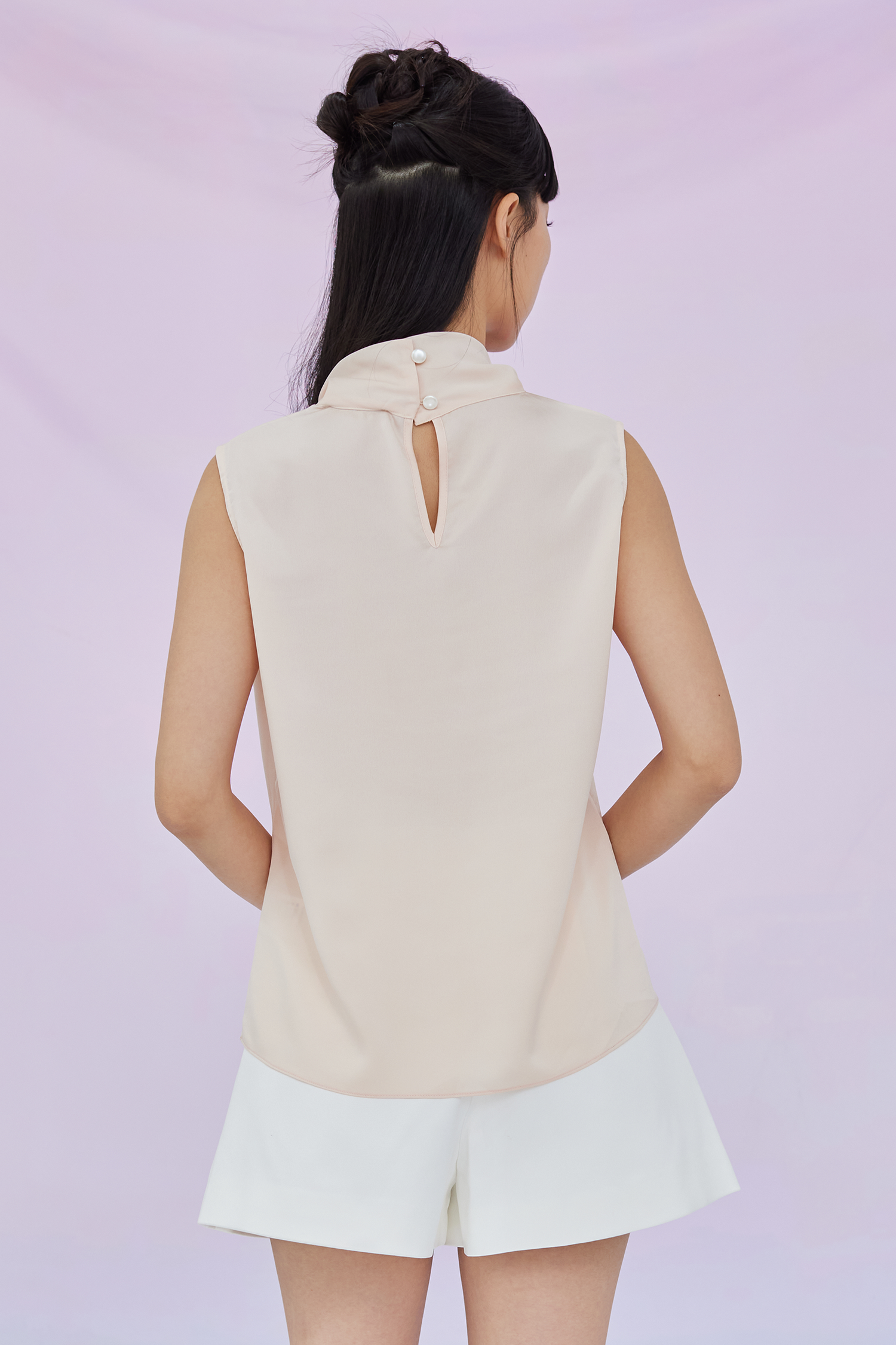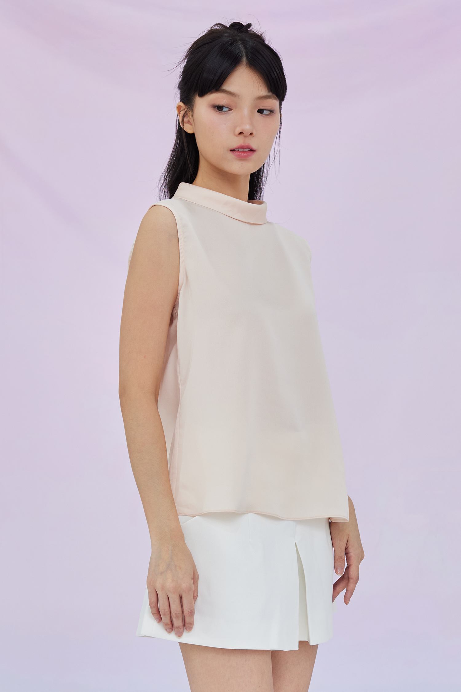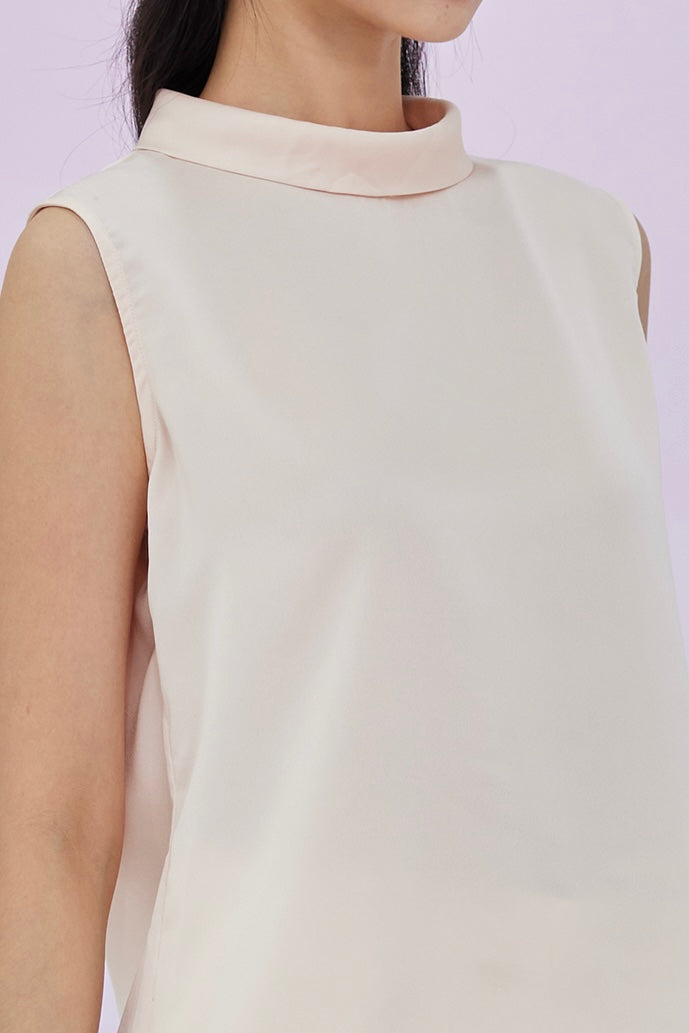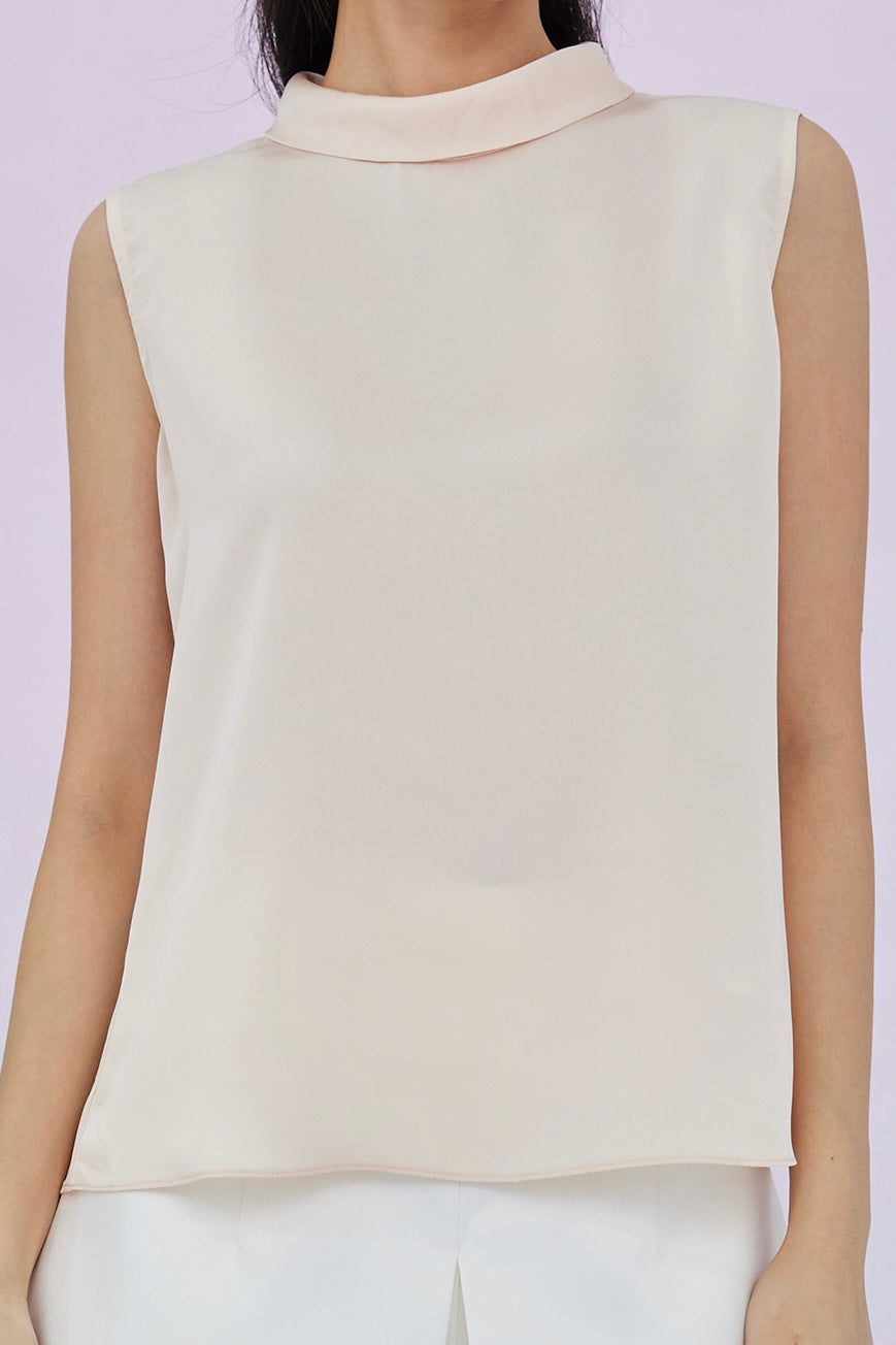 Gardenia Peach Tie Neck Sleeveless Top