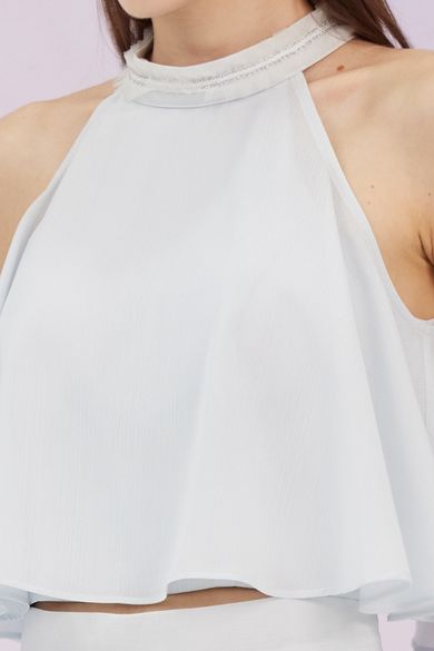 | Description: A chic and versatile addition to your wardrobe that effortlessly combines the allure of a halter neckline with the playful elegance of flared sleeves. This top is designed for those who seek a stylish statement piece that transitions seamlessly from casual days to nights out with ease. Specifications: Material: Crafted from lightweight chiffon, offering a breathable and airy feel, providing comfort without compromising on style. Composition: 100% Polyester Lining: Polyester Satin Design: The halter neckline adds an element of sophistication, creating a chic and refined look. |