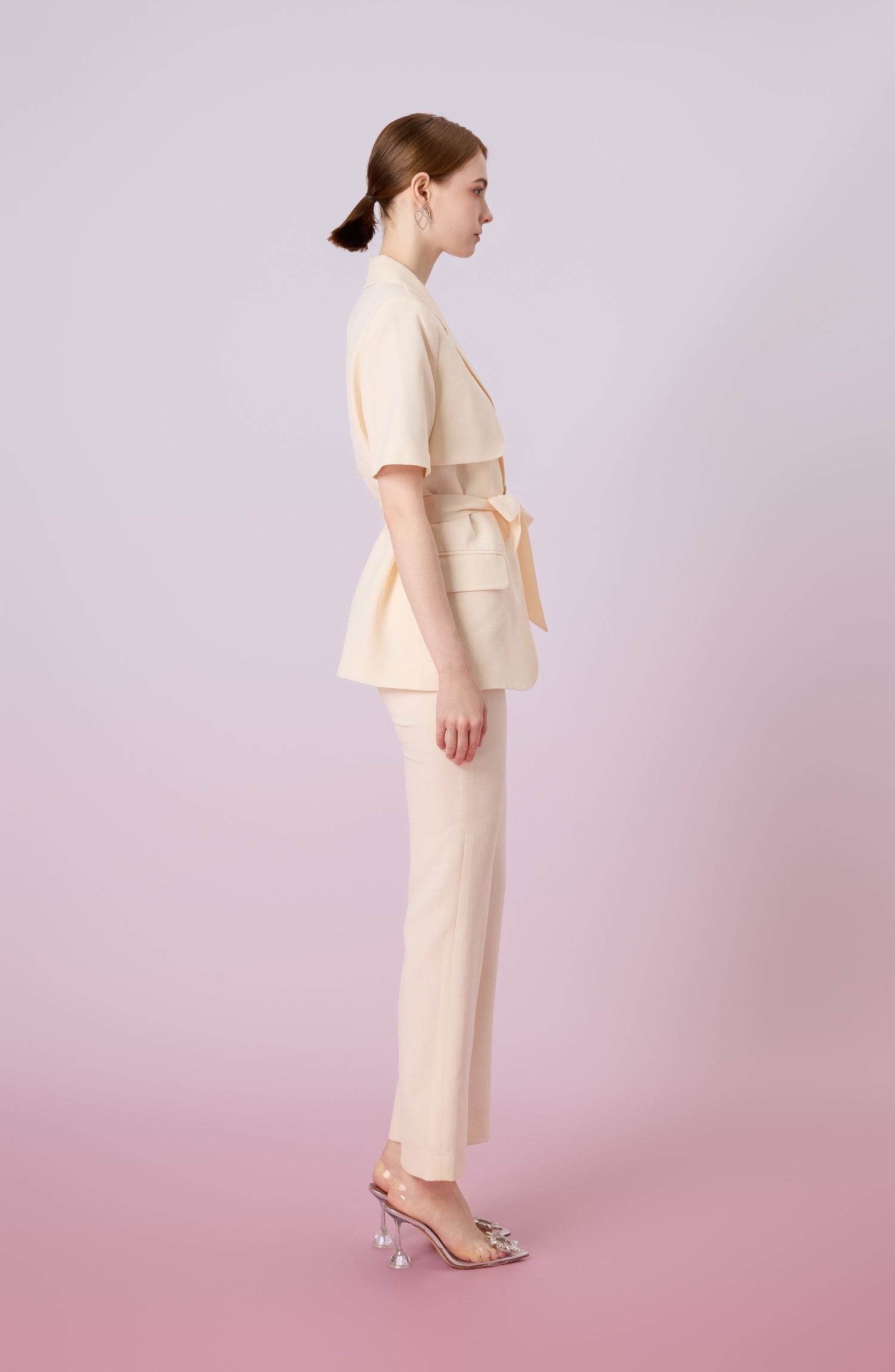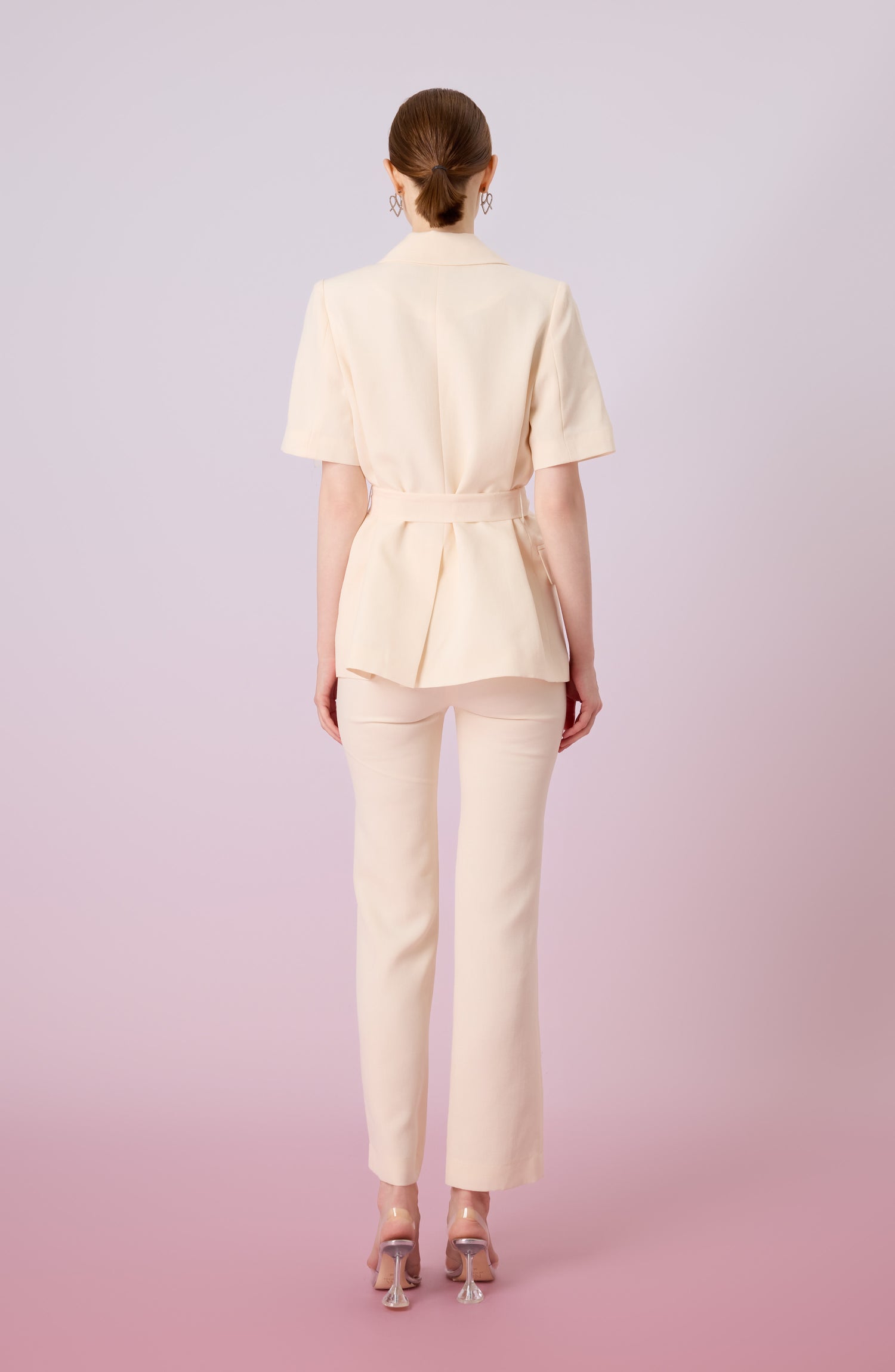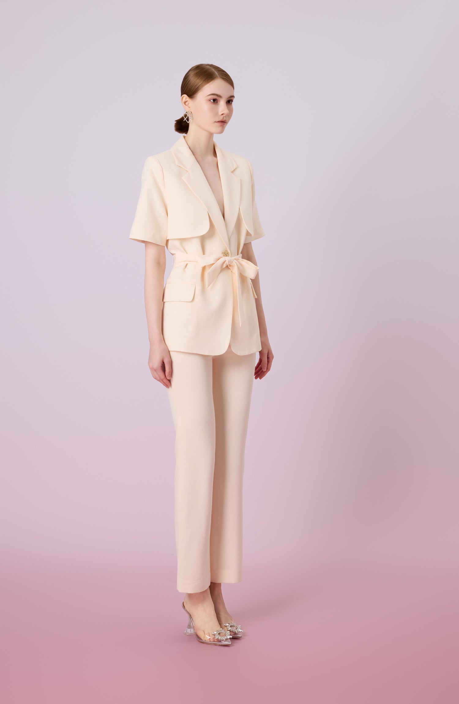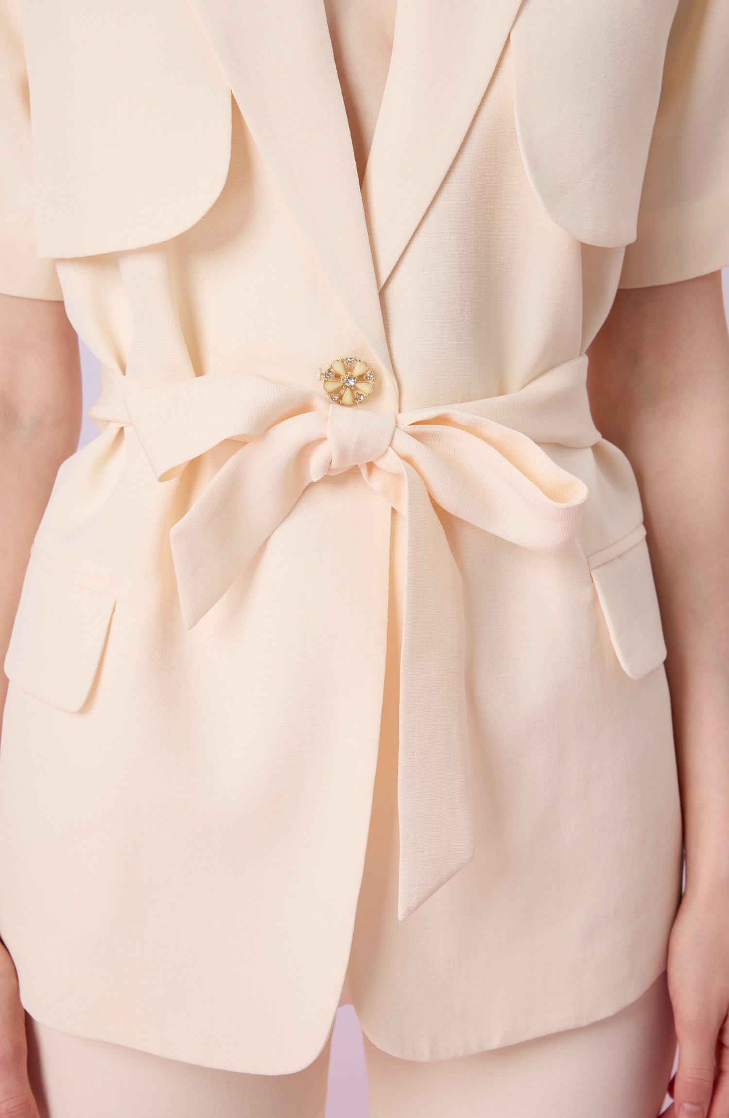 The Gavrila Cream Oversize Blazer is a modern twist on the classic blazer, this short-sleeved design features structured chest flaps for added detail, a sash belt to define the waist, and practical flap pockets for everyday wear. Perfect for transitioning from office to evening in warmer seasons.