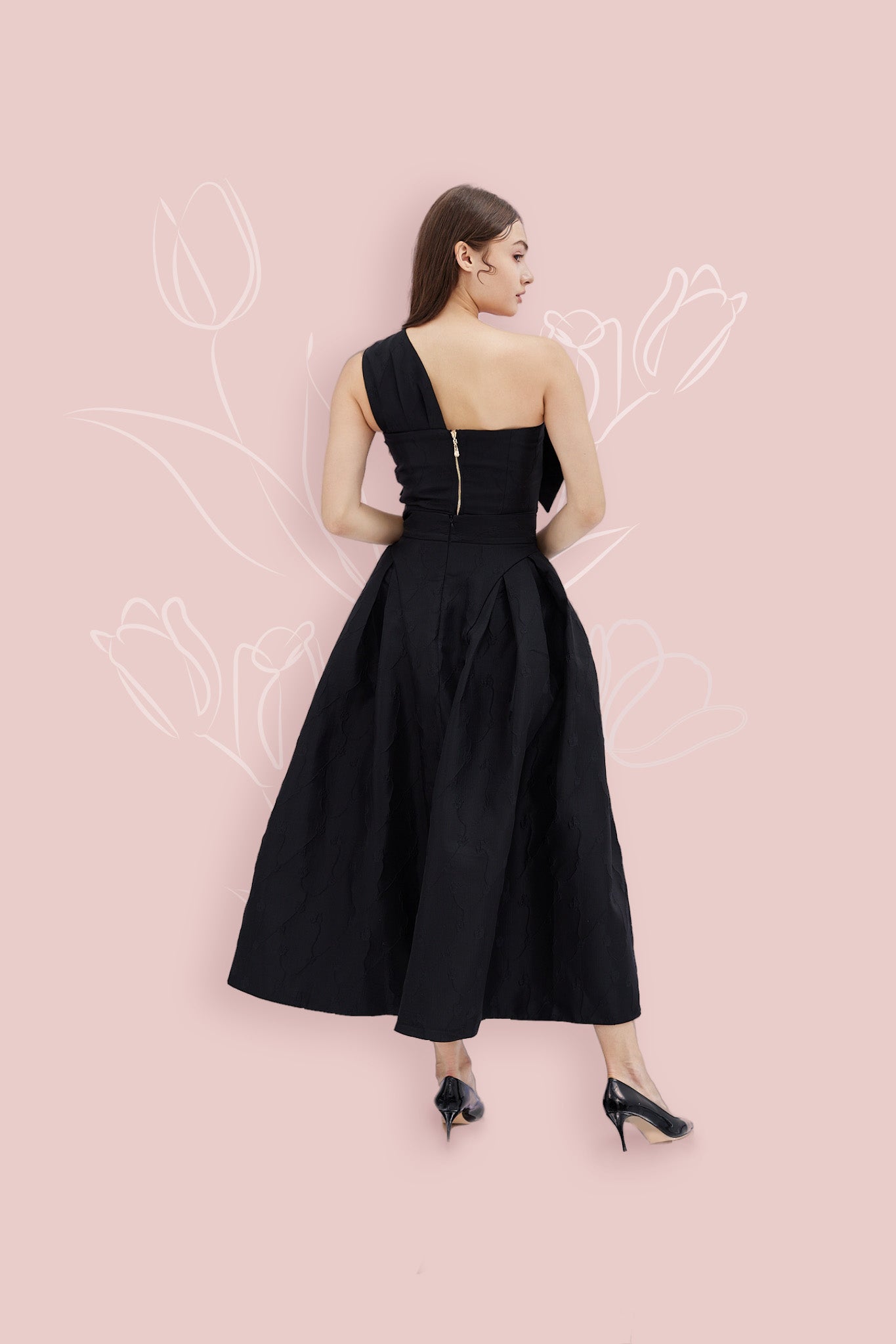 This skirt is part of a matching set designed to pair perfectly with our Gayla Black Ribbon Jacquard Top, creating a sophisticated and stylish ensemble. The Jacquard fabric adds a touch of luxury and texture, while the box pleat details add structure and elegance to the skirt.