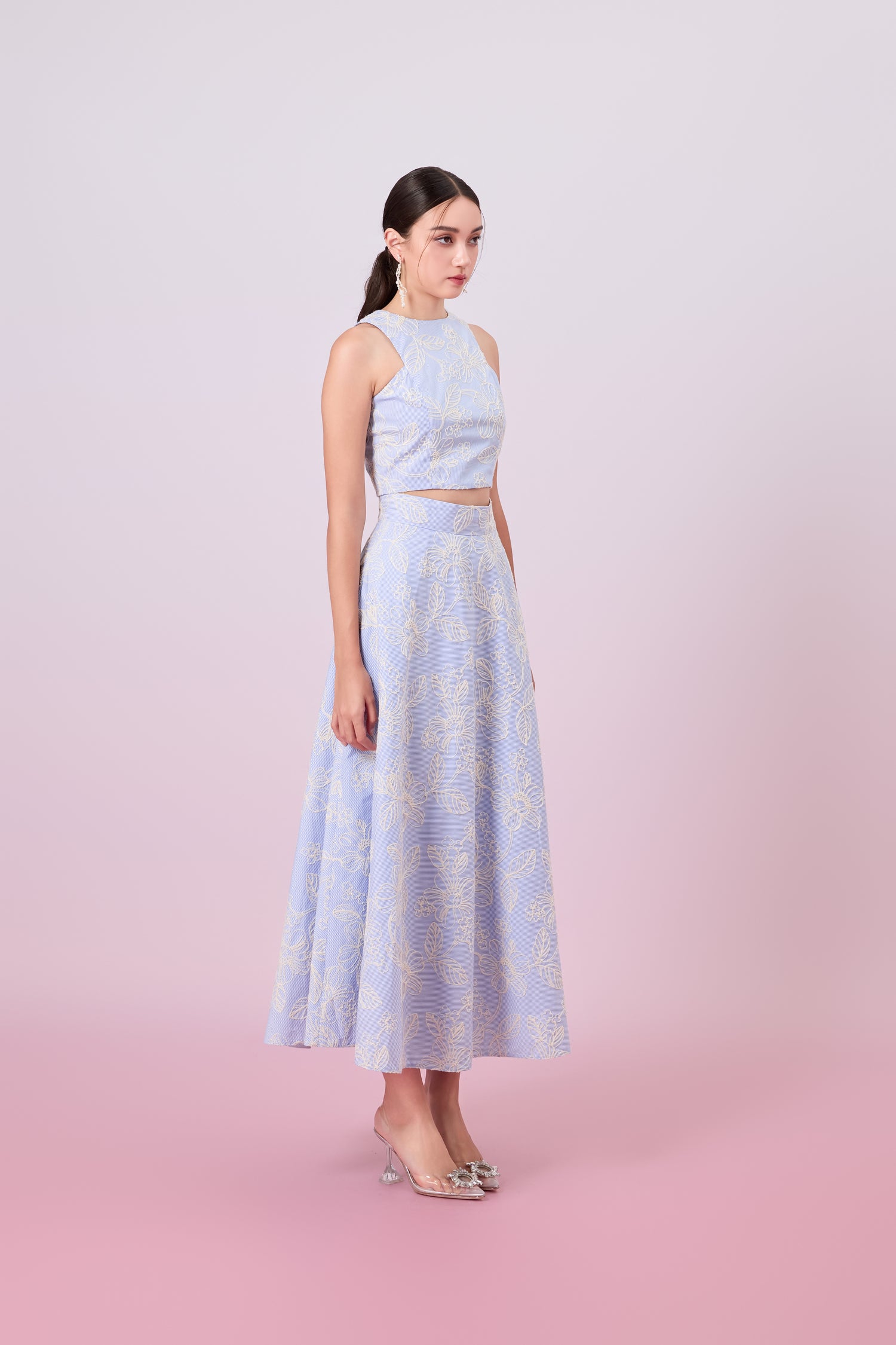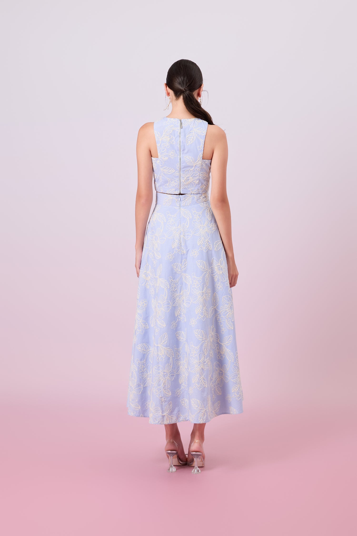 Geah Cream Floral Embroidery In Light Blue Sleeveless Top