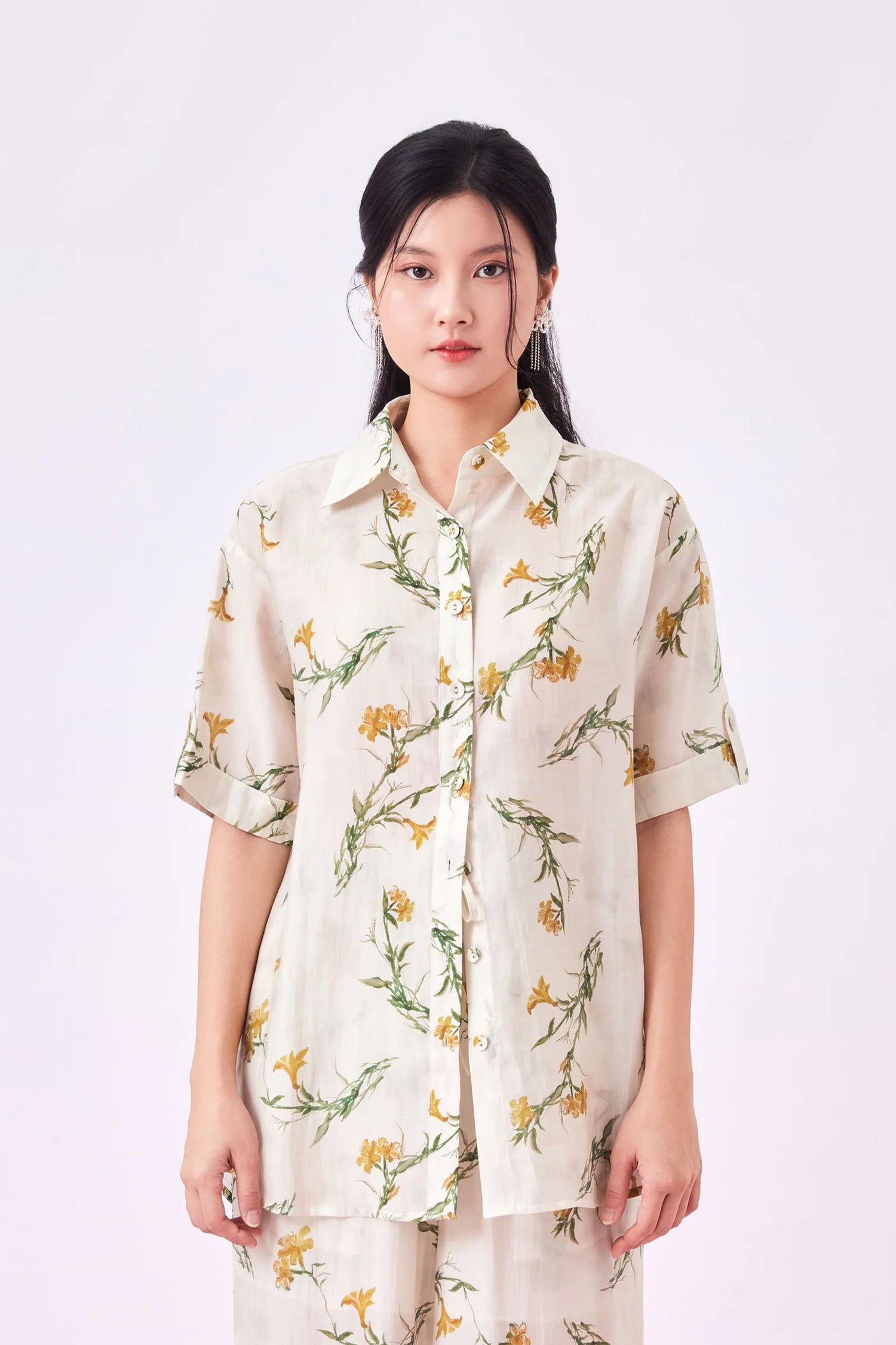 The shirt features a button-down front closure, allowing it to be easily opened and closed with buttons. This classic design adds a polished and tailored look to the garment while offering practicality and ease of wear.