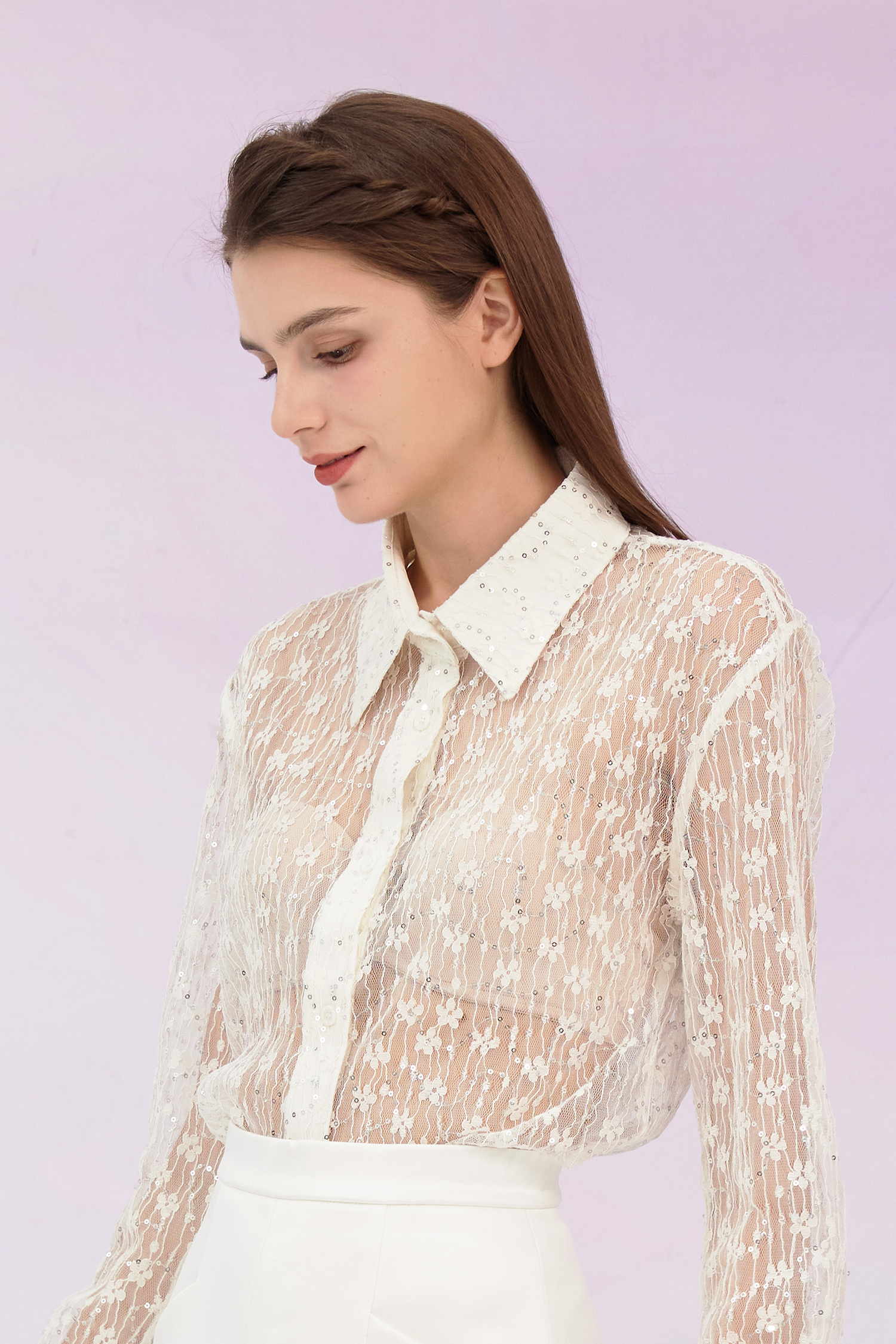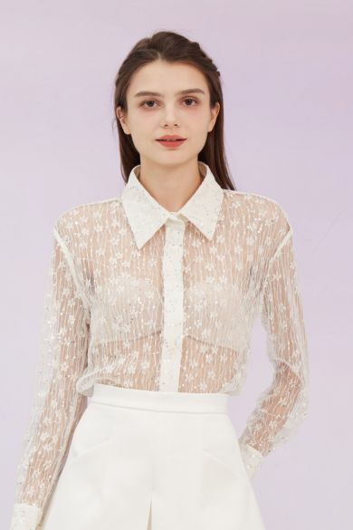 Design: The see-through design adds a hint of sensuality, balancing the sparkle of sequins with an alluring touch.