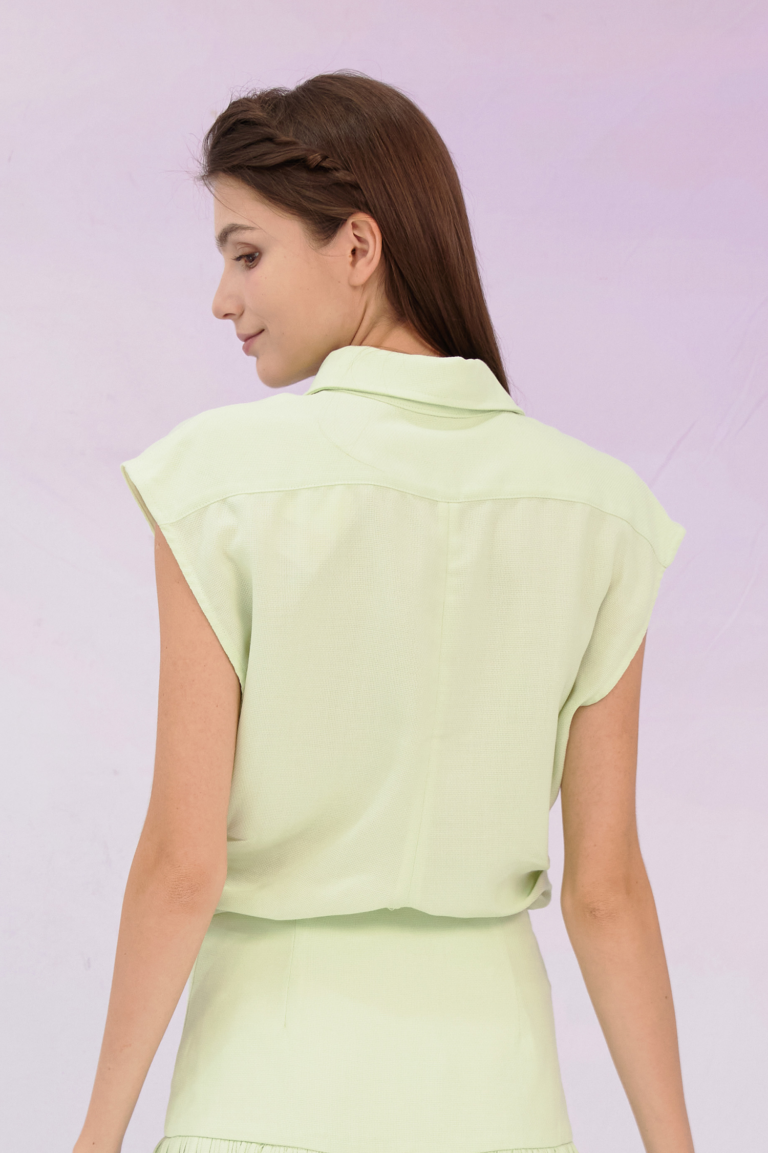 Material: Crafted from a lightweight and breathable fabric, this sleeveless top ensures comfort and ease of wear.