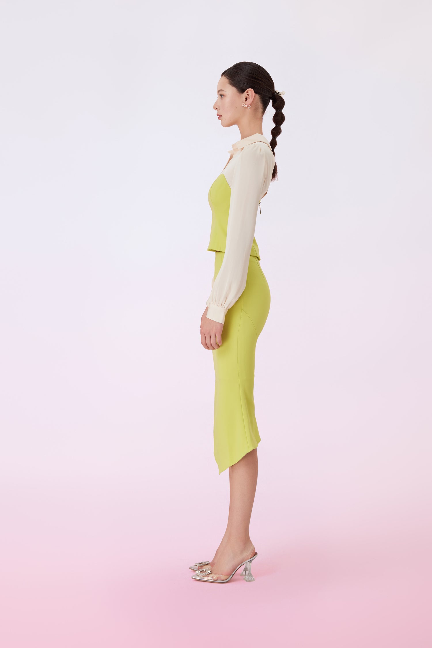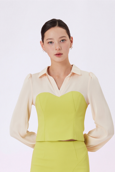 A refined and versatile addition to your wardrobe with the modern elegance of a two-fer design. This blouse is tailored for those who appreciate classic style with a contemporary twist, offering a polished and fashionable piece for various occasions.