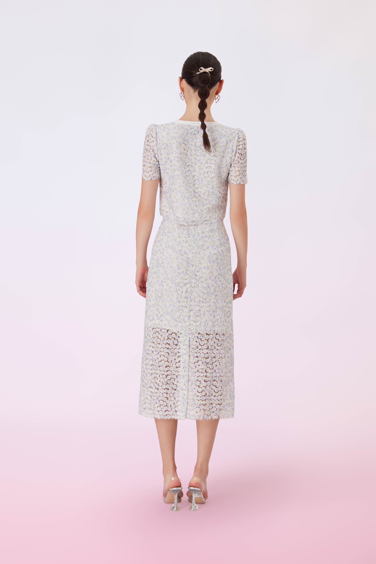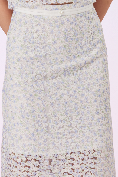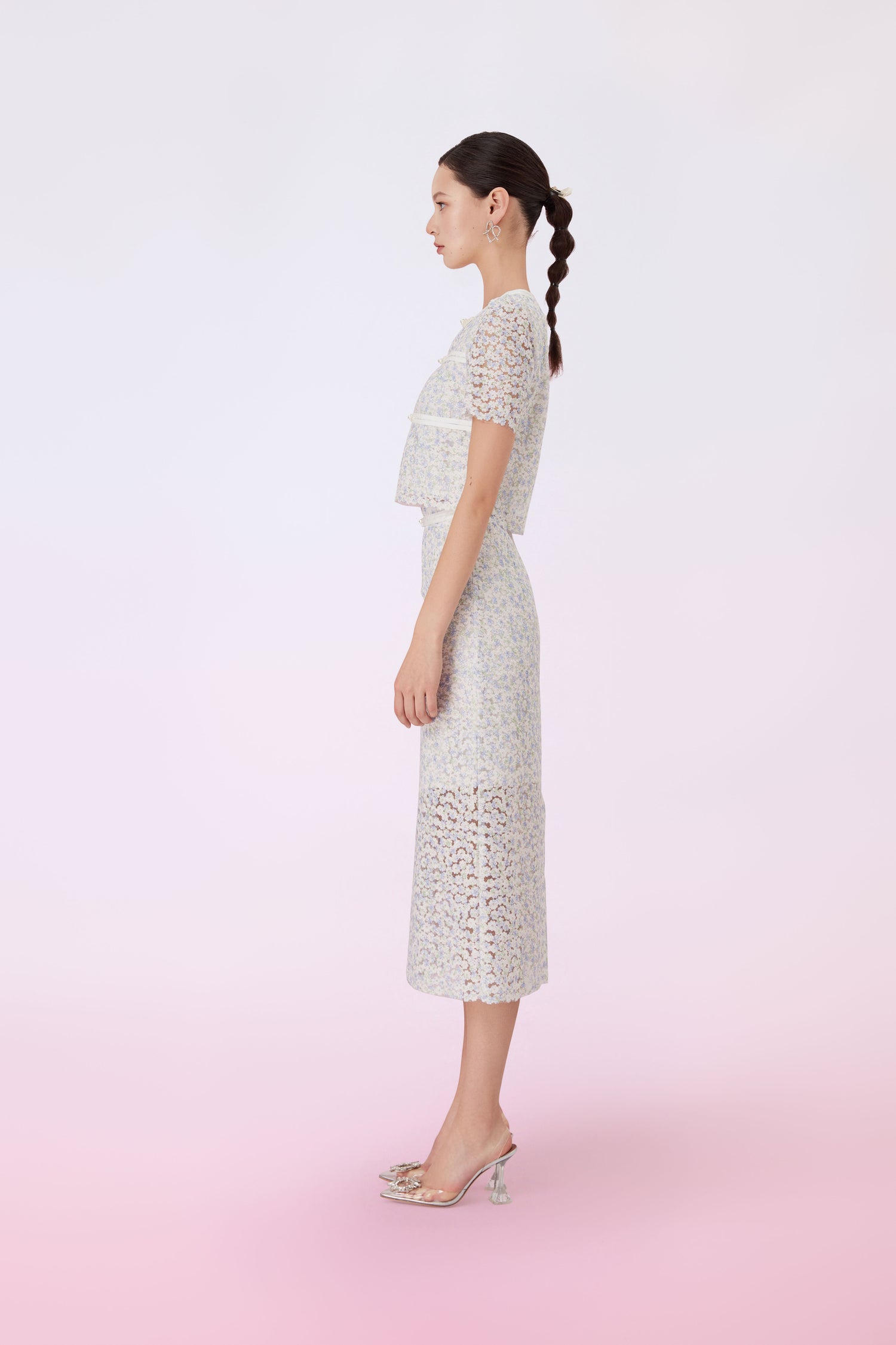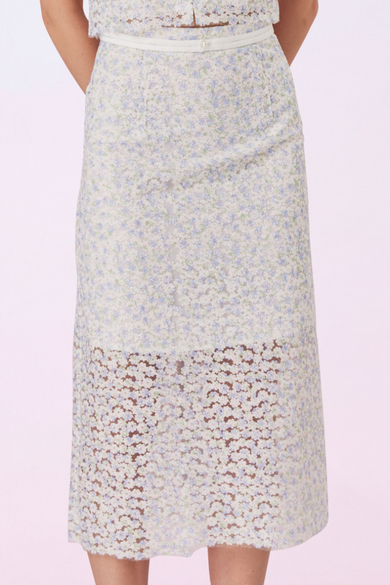 A lace midi skirt is a sophisticated and feminine garment that combines classic elegance with modern style. Adding traditional elements with a modern fashion. It can be dressed up with a blouse and heels for a sophisticated evening look or paired with a simple top and flats for a chic daytime ensemble.