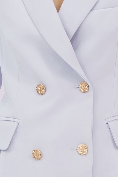 Design: The double-breasted front features overlapping panels and dual sets of buttons, adding a classic and tailored touch.