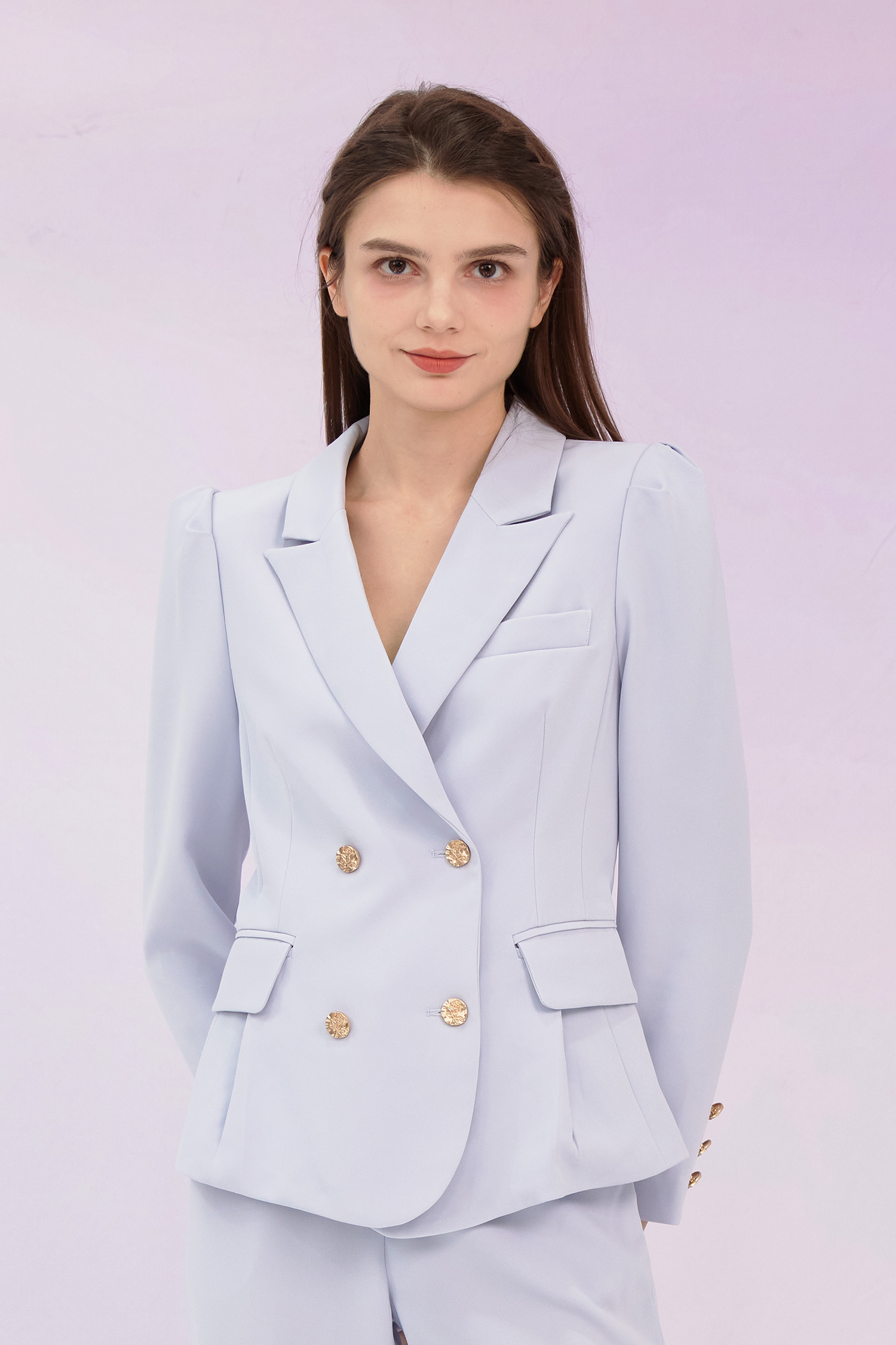 Material: Crafted from high-quality fabric, this double-breasted jacket ensures a refined and polished appearance.