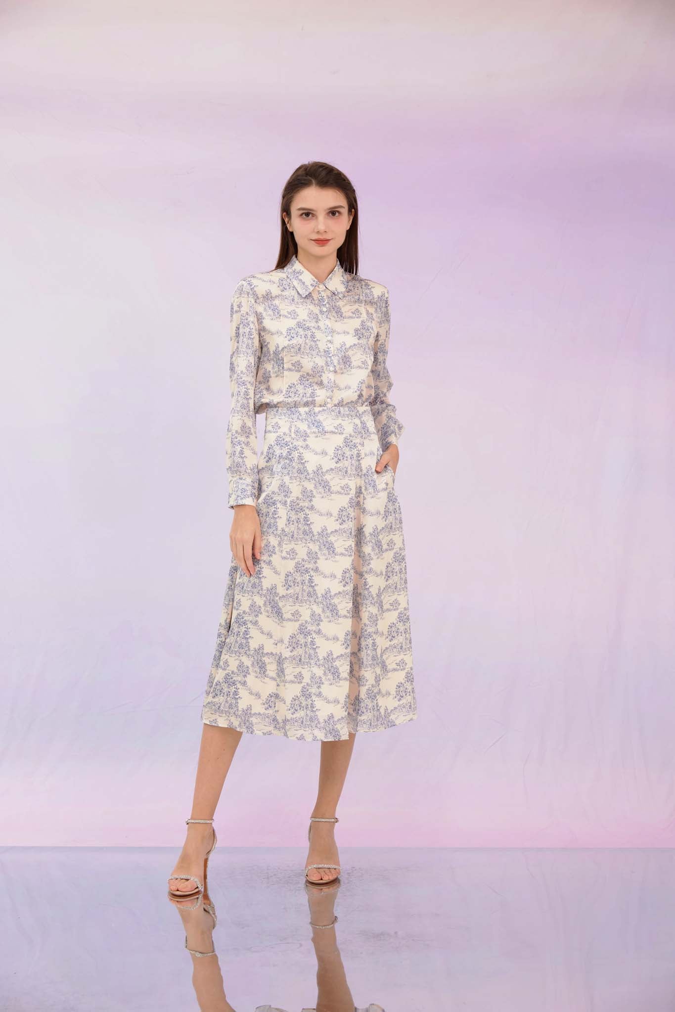 Glynis Blue Print A-Line Skirt