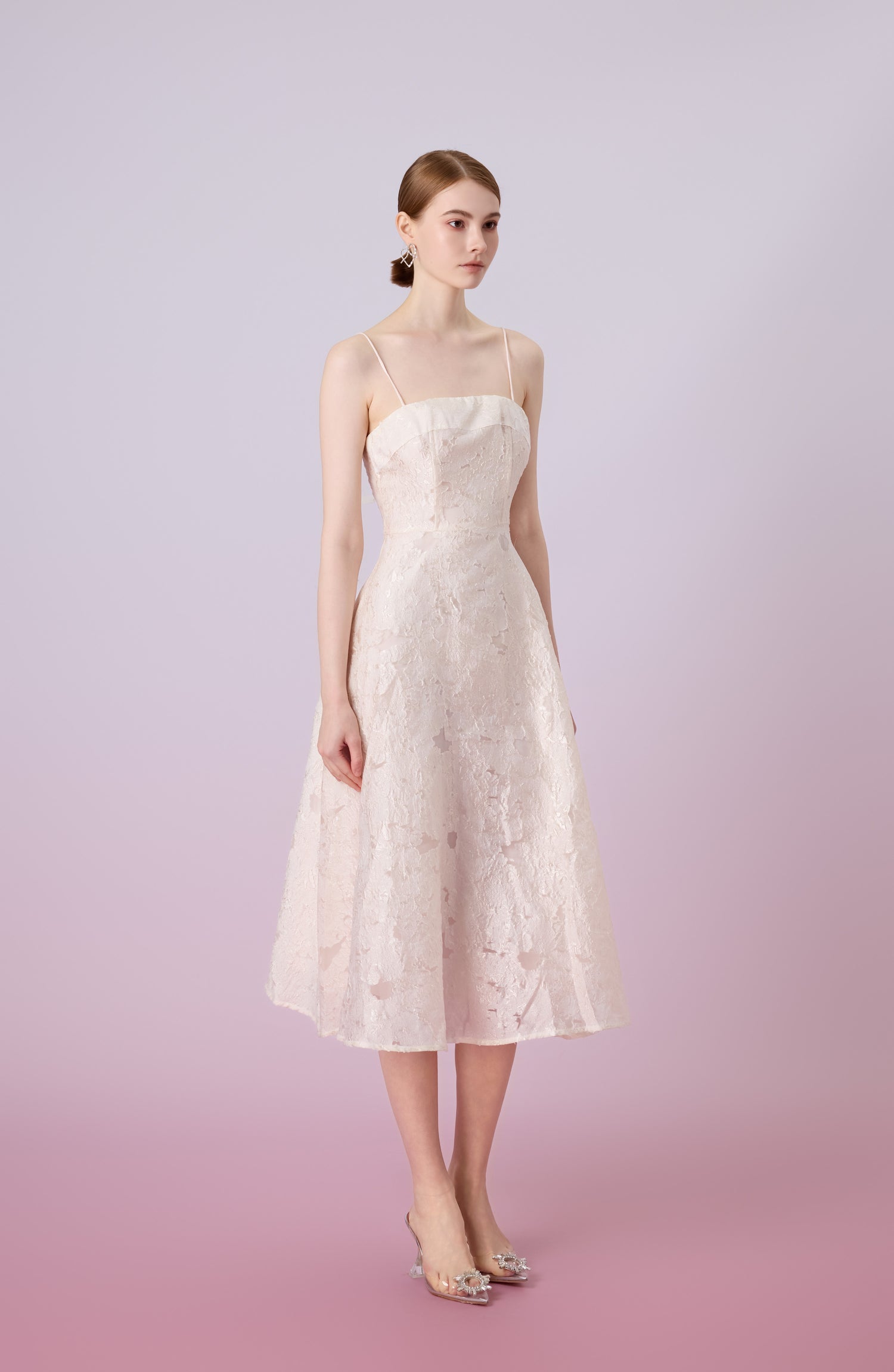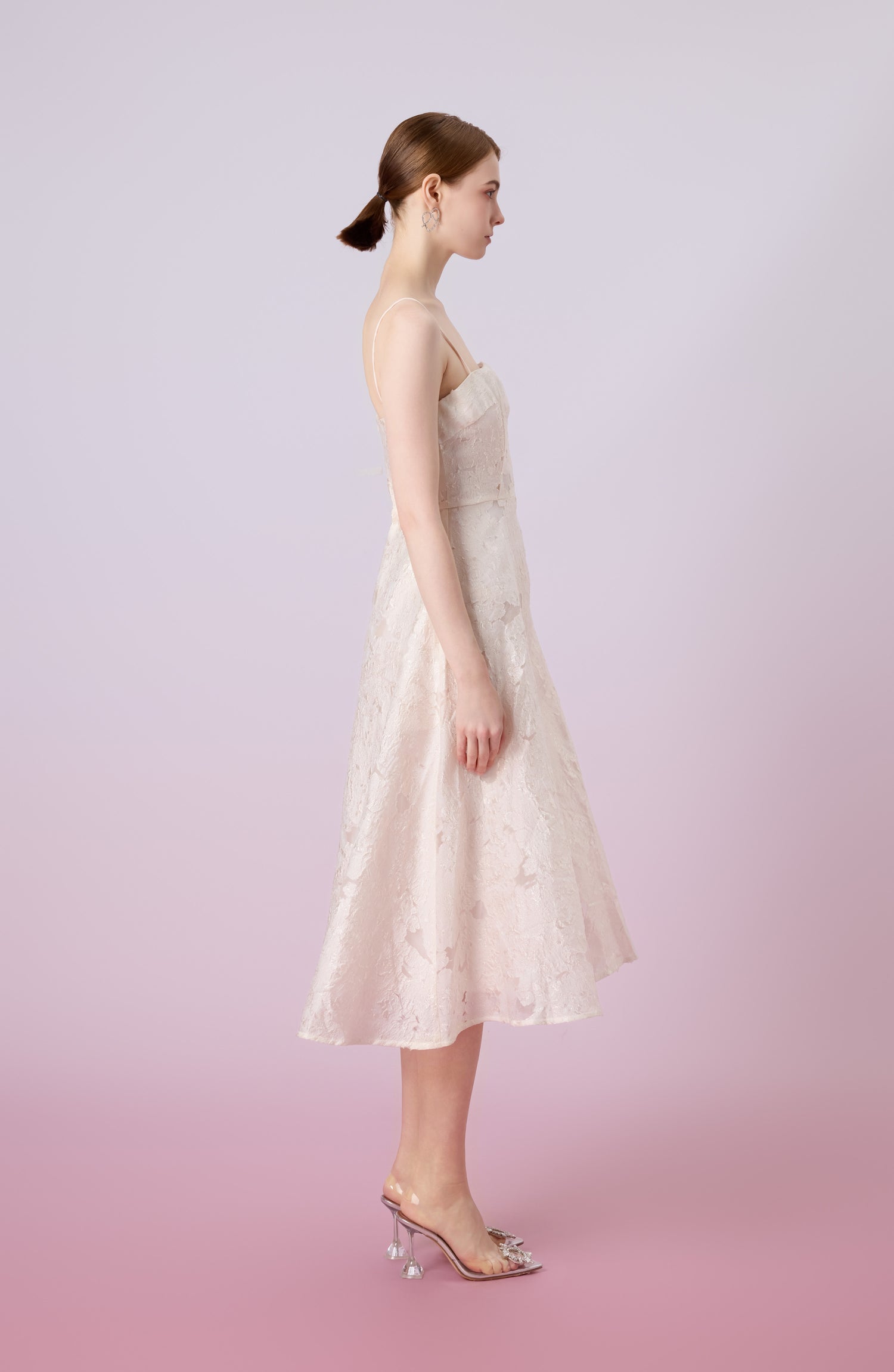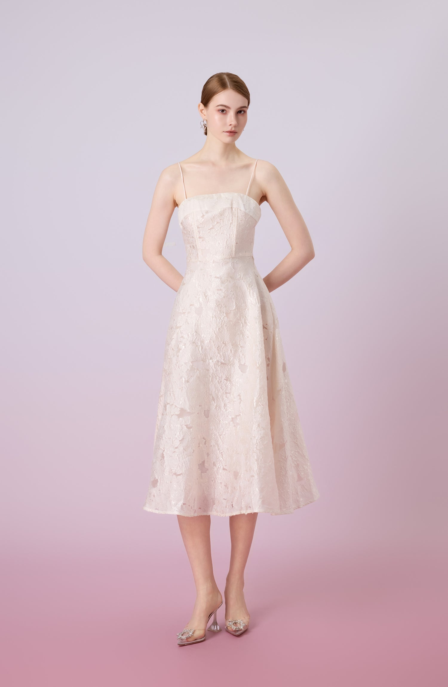 The Graciella Beige Lace Long Dress exudes timeless elegance with its delicate lace fabric Featuring a flattering flare-fitted silhouette and midi length, this dress offers both comfort and style. The side pockets add a practical yet chic touch, making it perfect for garden parties, weddings, or any special occasion.