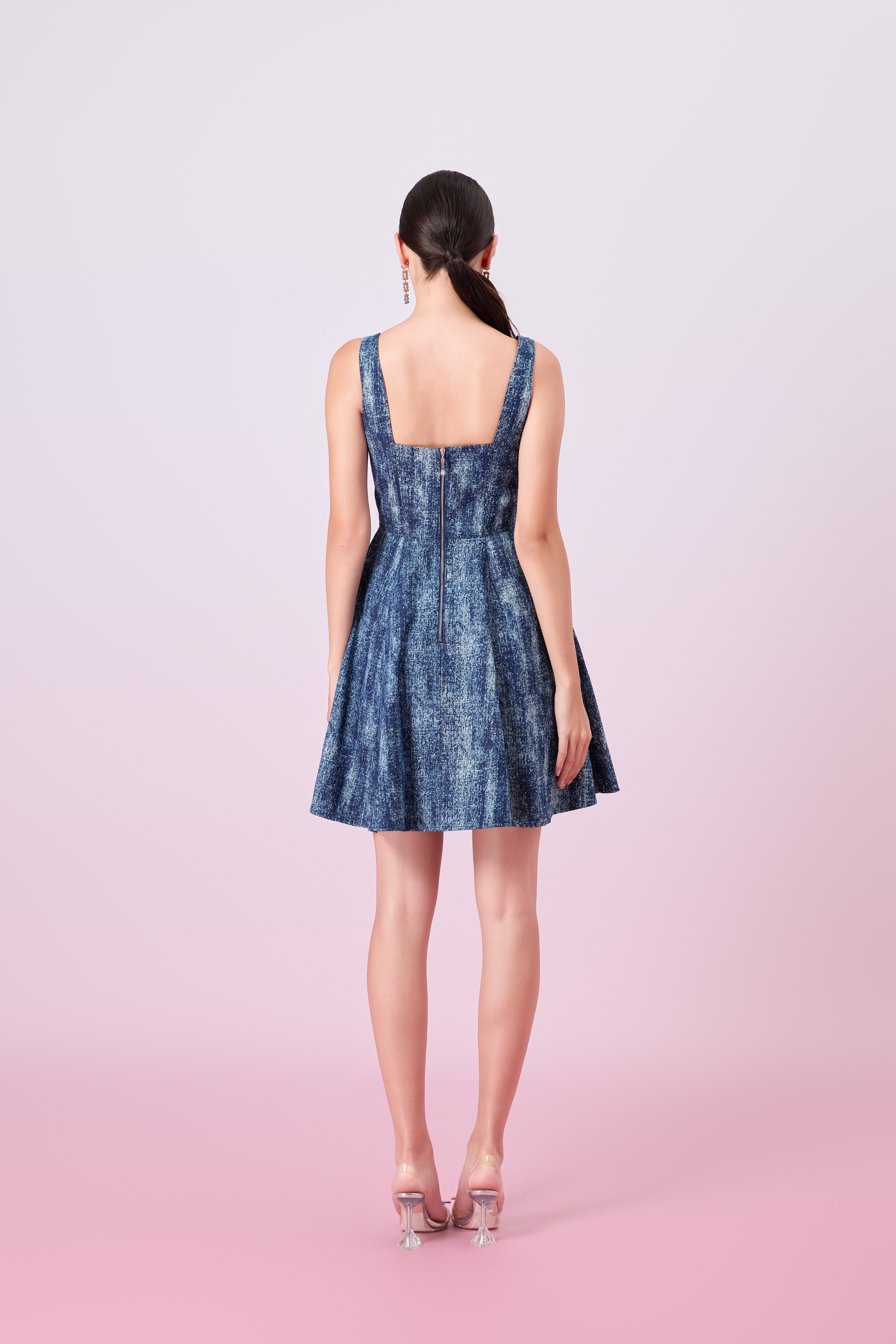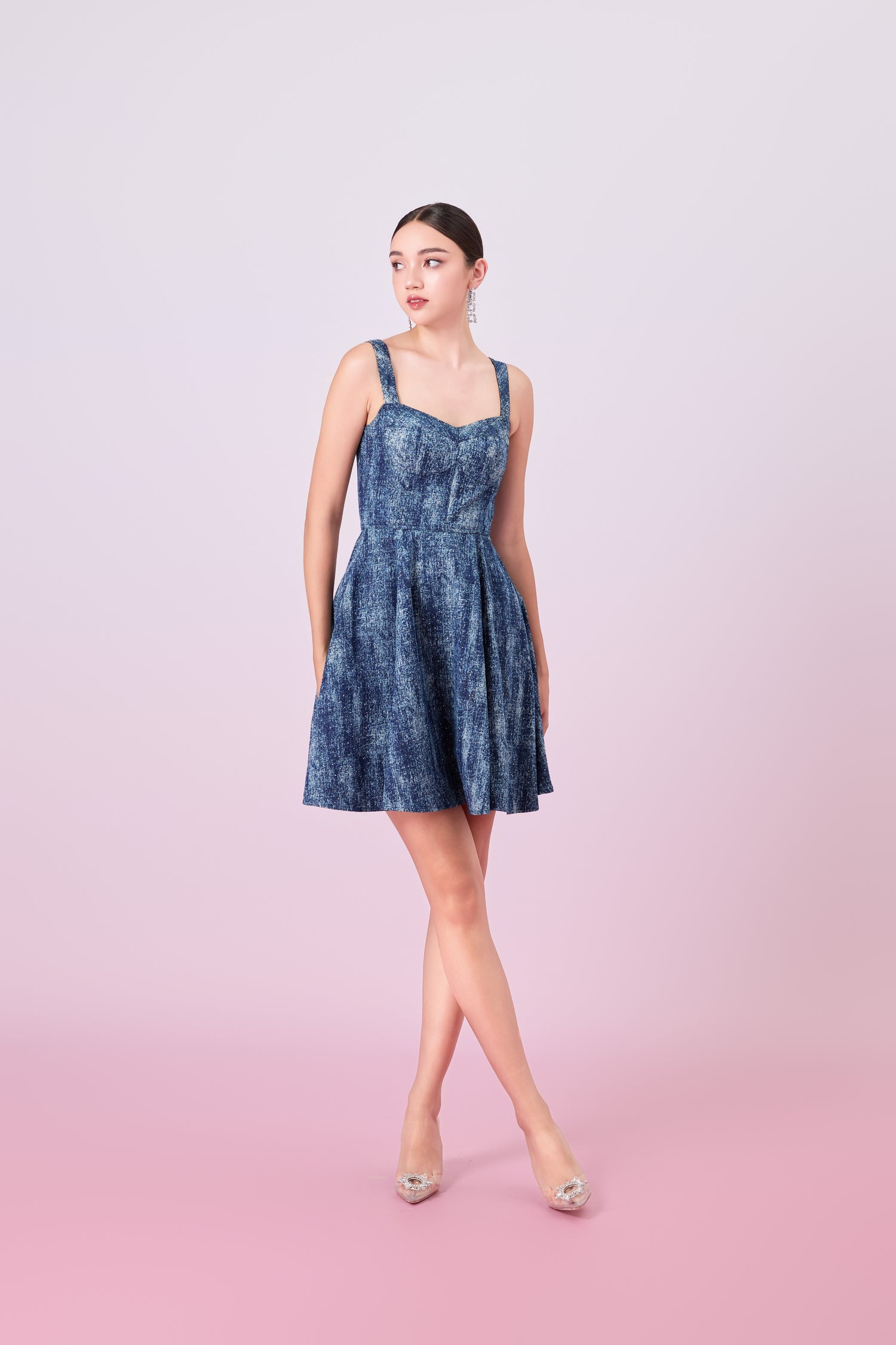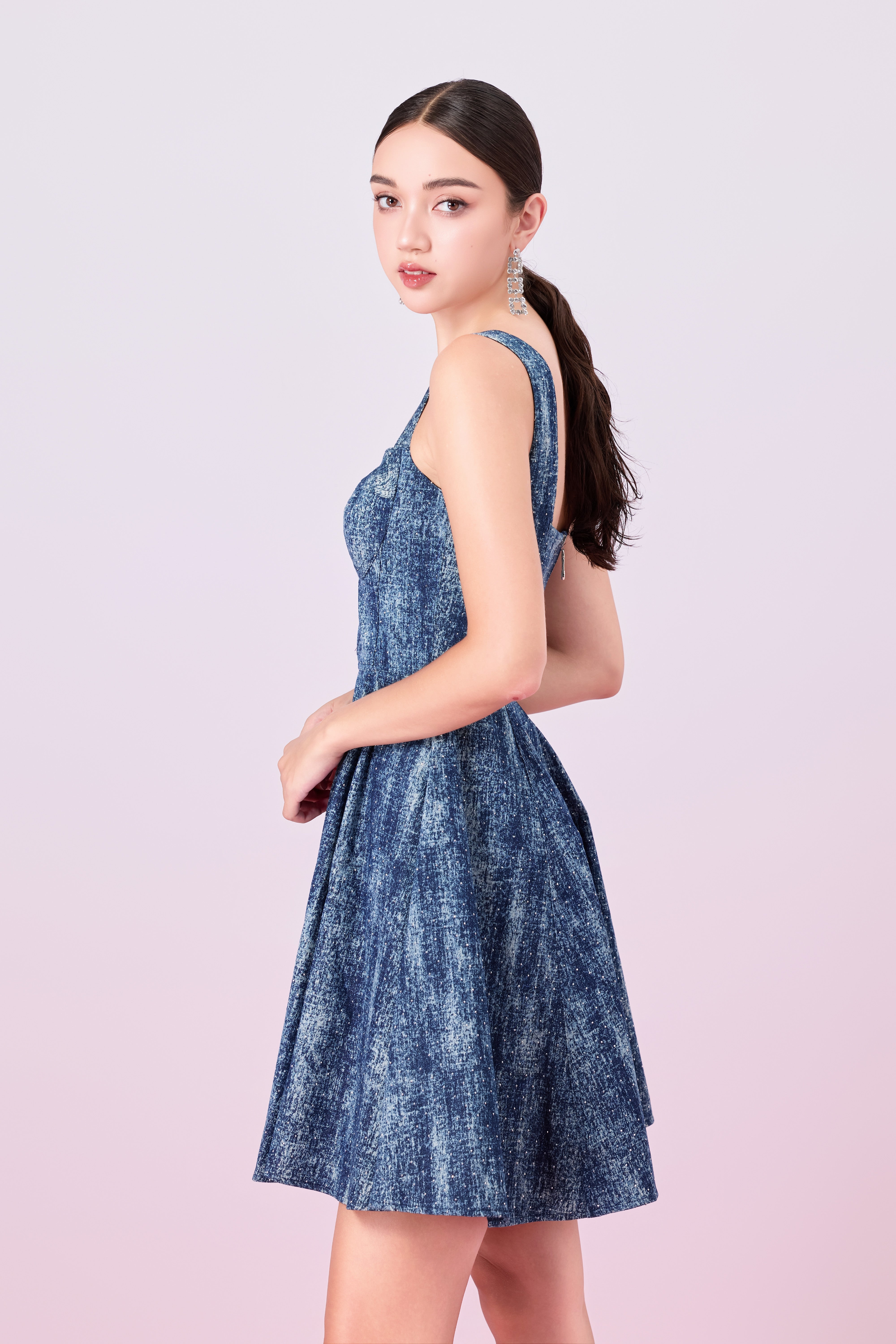 The Jacqueleen Twinkle Dark Blue Strap Dress offers a stylish blend of casual and glam, perfect for adding a bold statement to your wardrobe. Crafted from rich dark blue denim, this bralet-style dress features a padded structure that provides shape and support with A-line style dress ensuring both comfort and a flattering fit. The unique embellishments add a touch of sparkle and elevate the classic denim fabric, making it a standout piece.