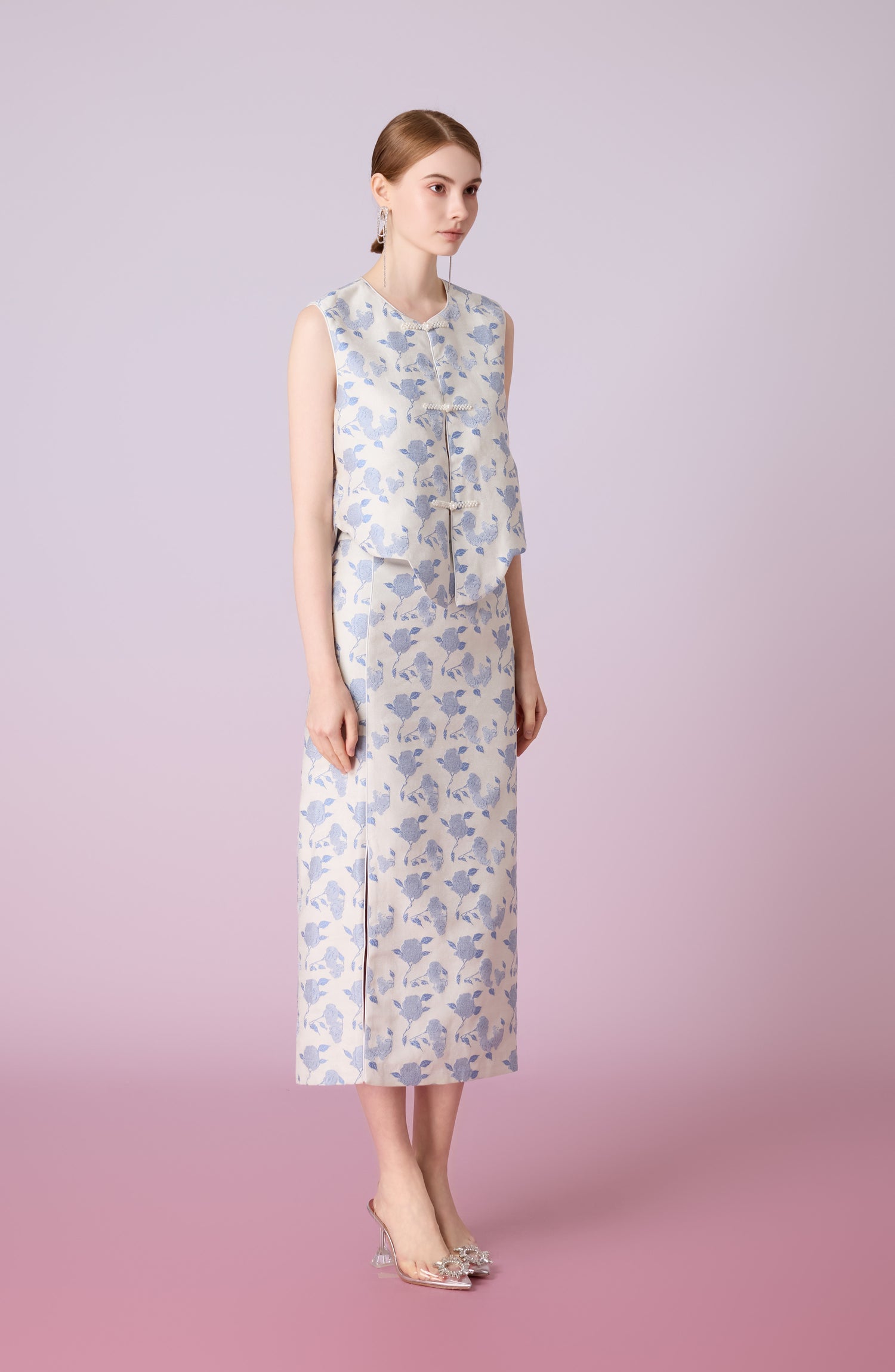 The Jewel White with Rose Print Modern Cheongsam Vest is a traditional elegance meets modern design in this standout cheongsam-inspired vest, featuring a striking large scallop hemline that adds fluidity and flair. Crafted with attention to detail, the piece showcases iconic cheongsam pearl buttons along the front for a classic, refined finish. The sleeveless, structured silhouette blends heritage tailoring with updated style, making it perfect for layering or wearing solo as a statement piece.
