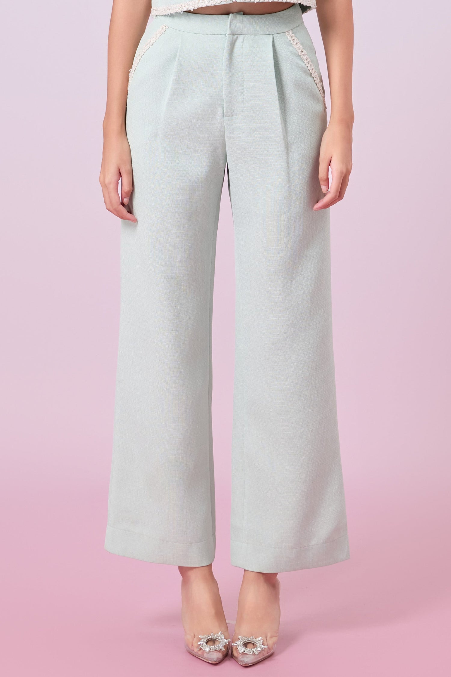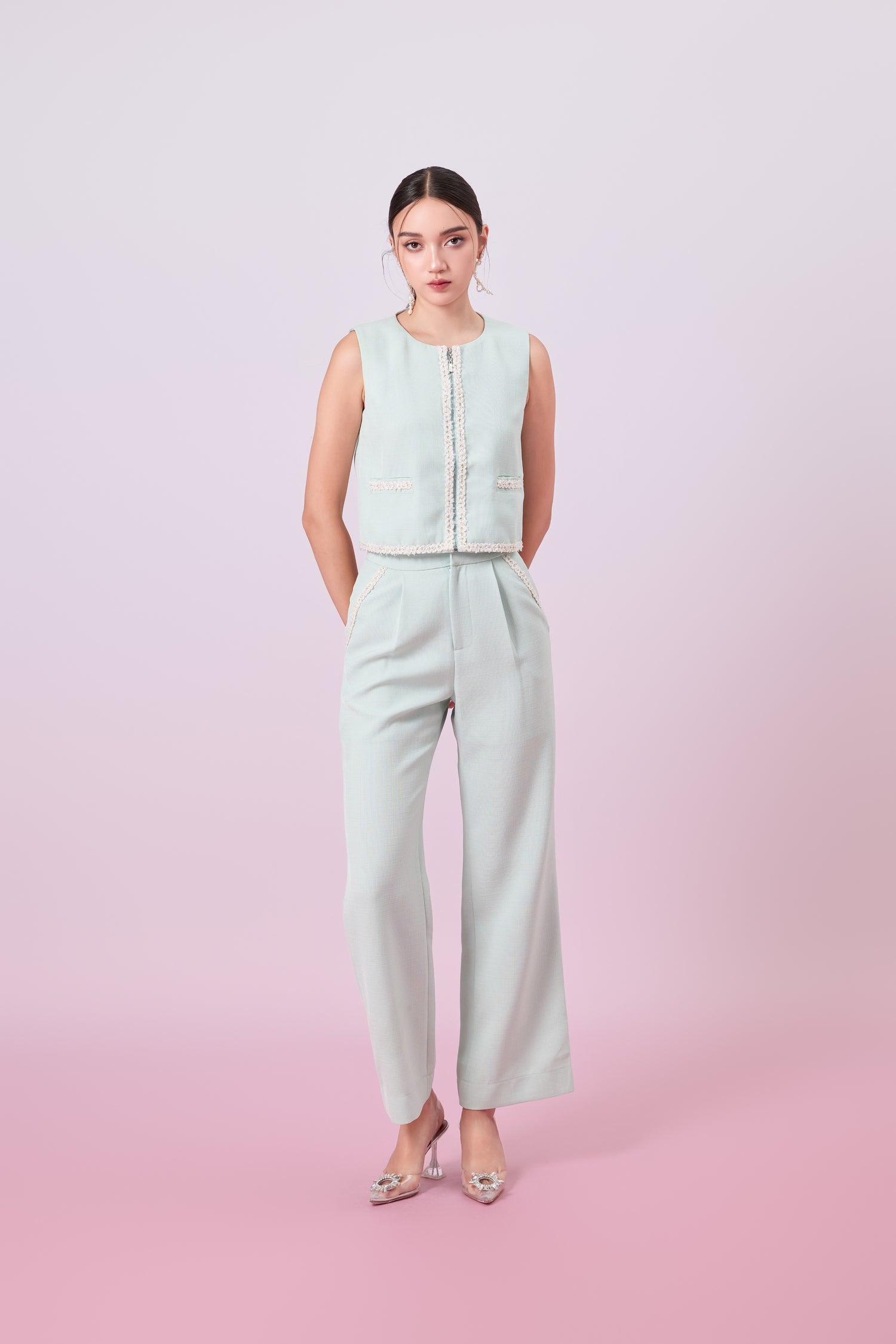Add a soft touch of sophistication to your wardrobe with these Jewelyn Light Green Tweed Straight Pants. Cut in a timeless straight-leg silhouette, these pants are crafted from textured pastel tweed that blends classic tailoring with a modern color palette. The high-waisted fit flatters the figure, while the structured yet comfortable fabric offers all-day polish.