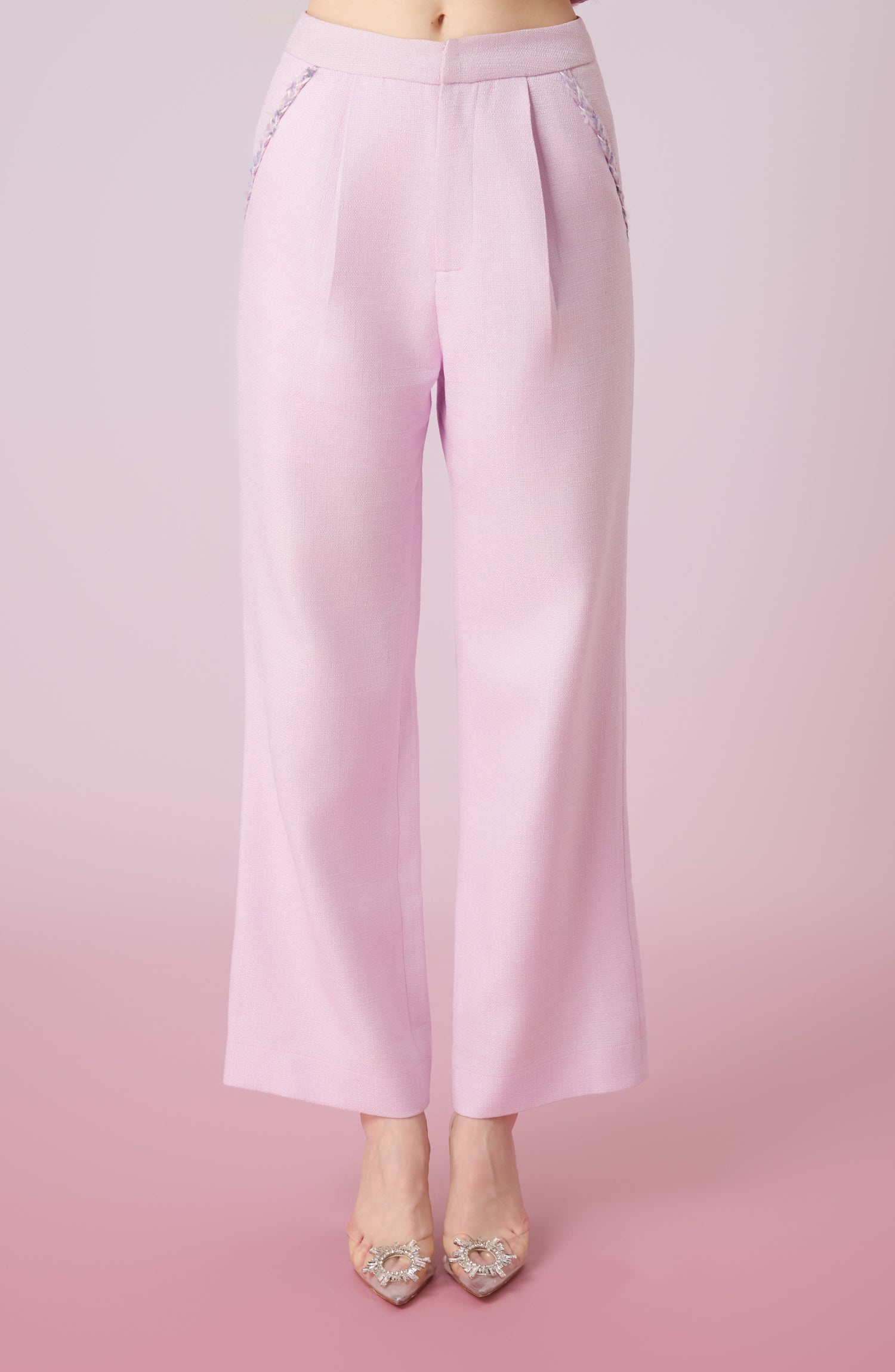 Add a soft touch of sophistication to your wardrobe with these Jewelyn Lilac Tweed Straight Pants. Cut in a timeless straight-leg silhouette, these pants are crafted from textured pastel tweed that blends classic tailoring with a modern color palette. The high-waisted fit flatters the figure, while the structured yet comfortable fabric offers all-day polish.