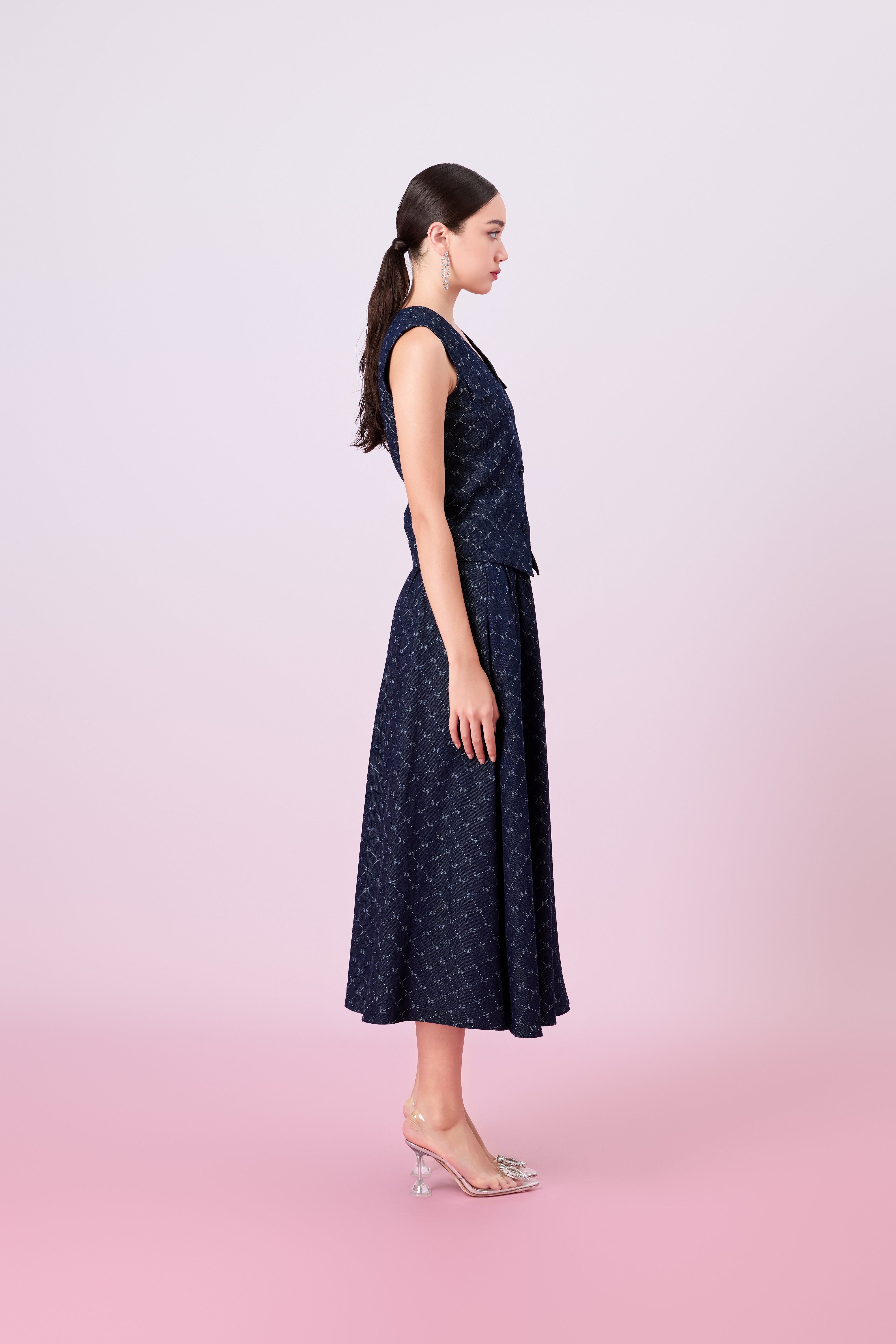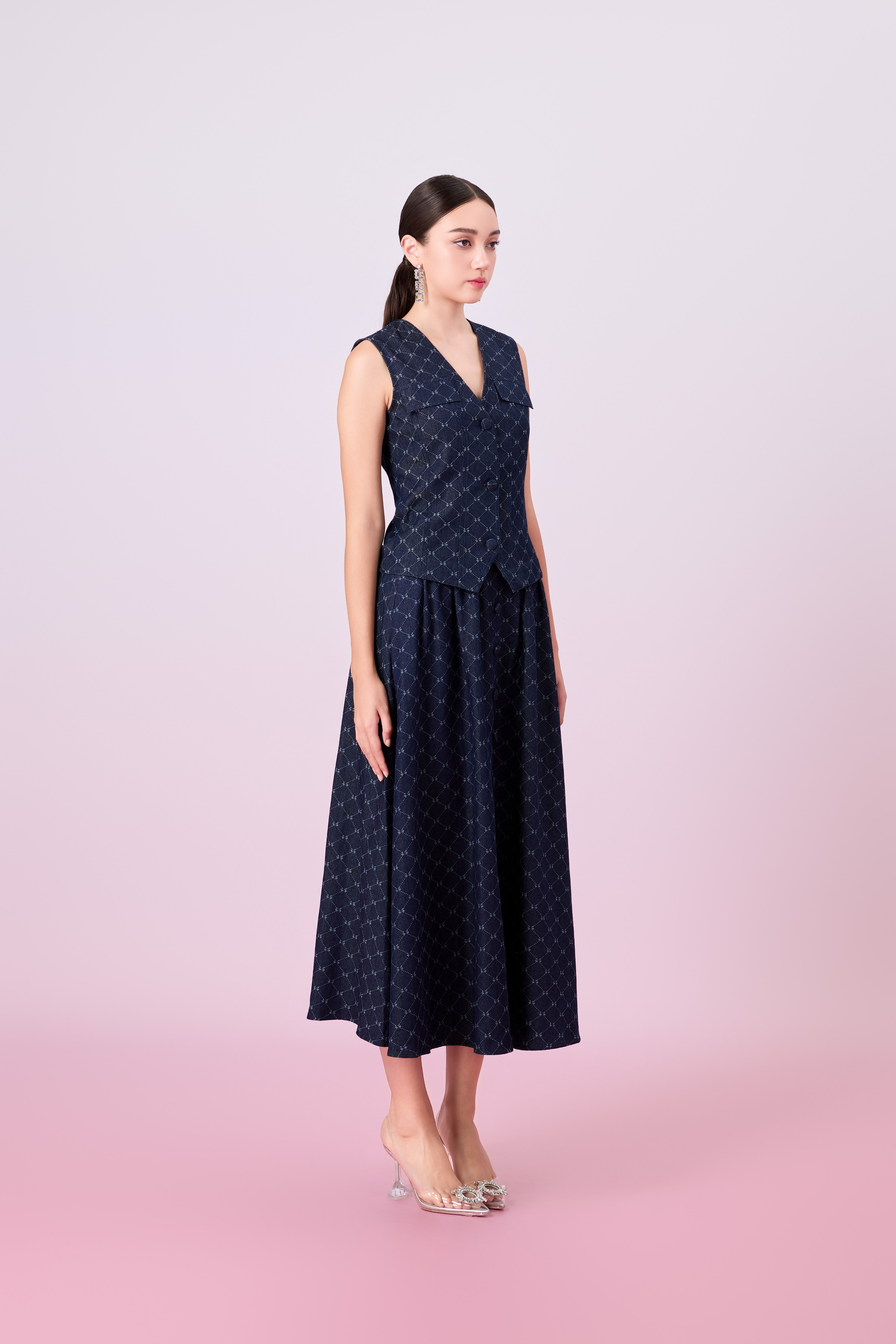 The Joellen Dark Blue Button Front A-Line Skirt is a timeless, flattering wardrobe staple crafted from medium‑weight rigid cotton denim with just a hint of stretch for ease of movement. This skirt features a full button‑front placket from waistband to hem.