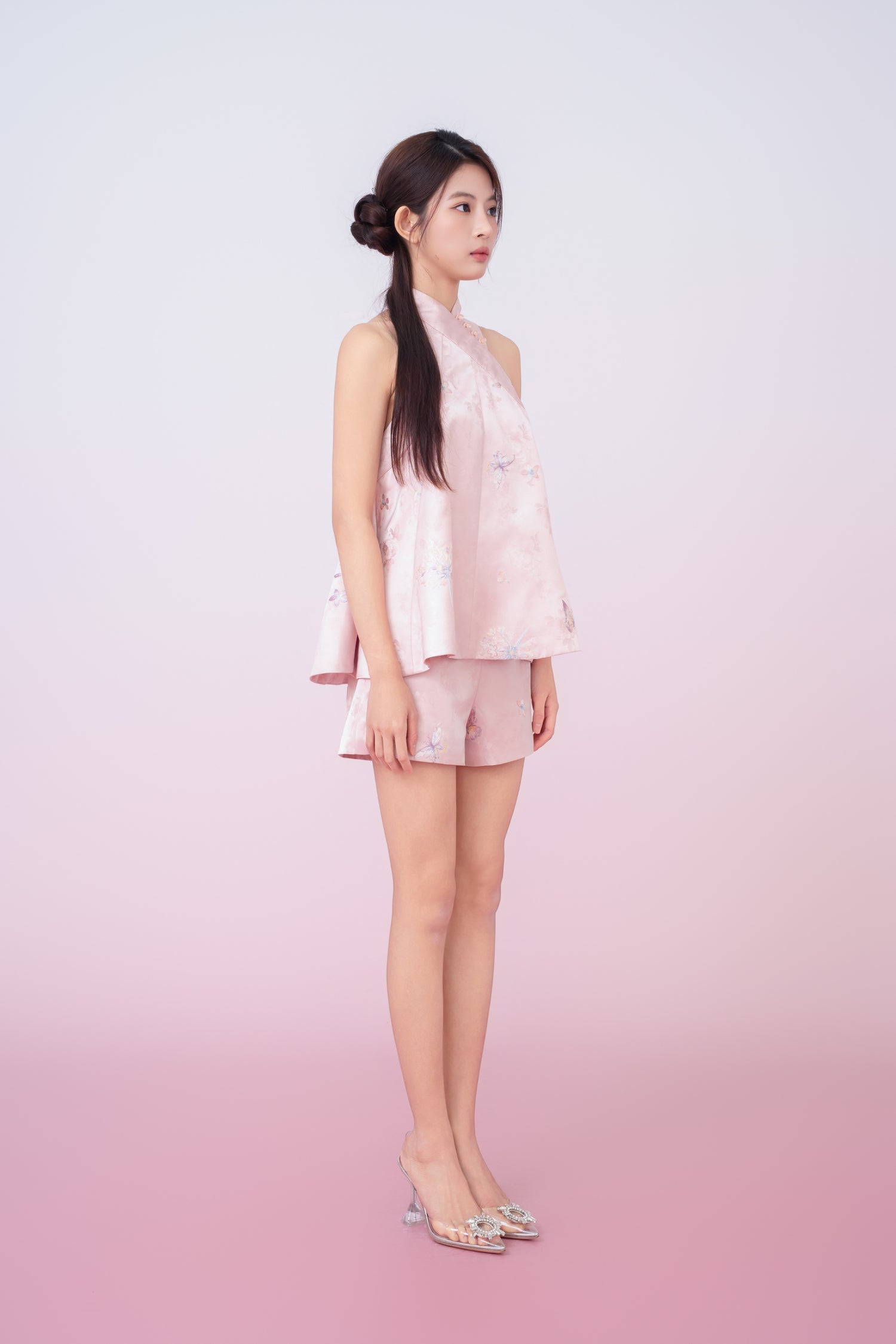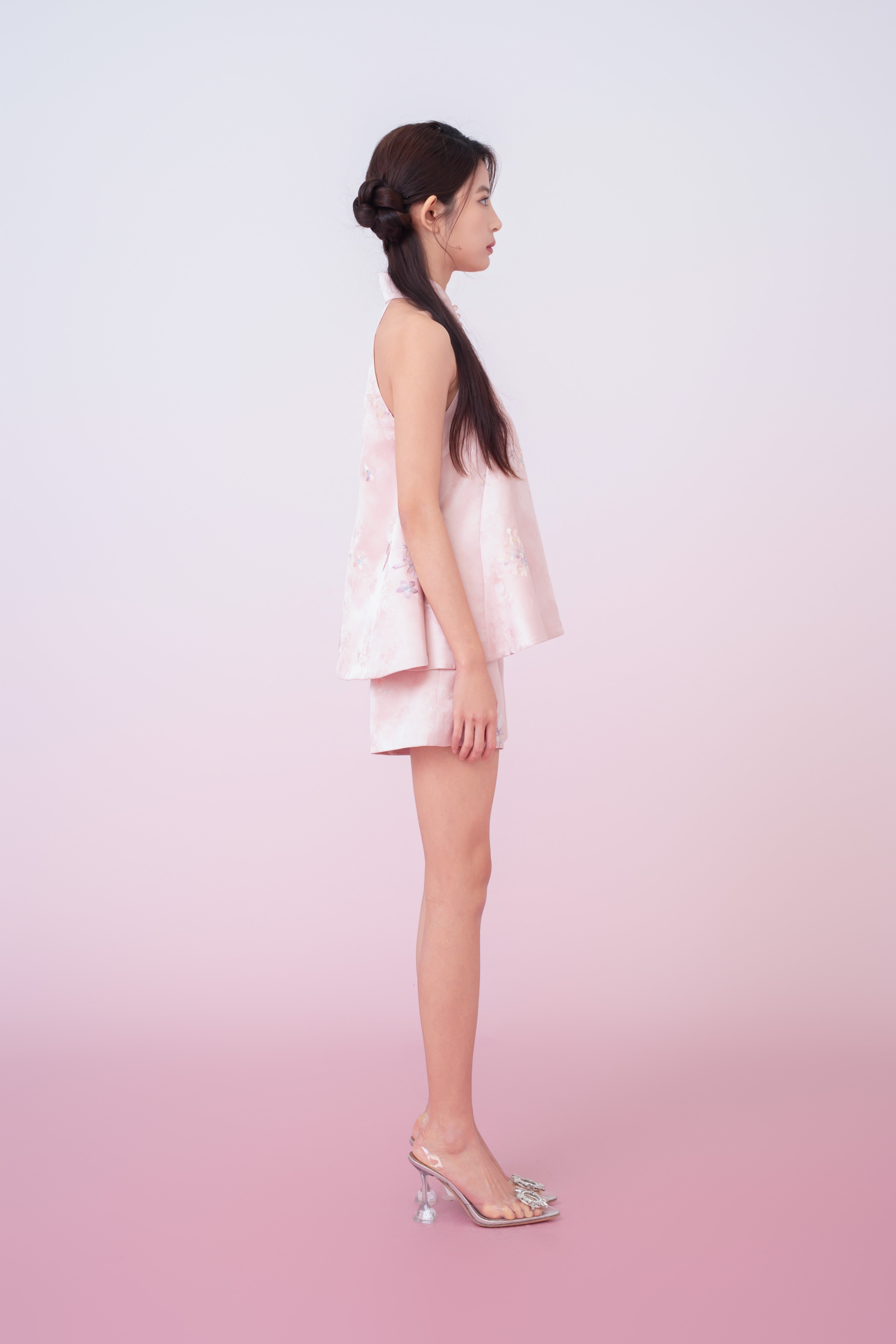 Add a touch of elegance to your casual wardrobe with the Karlee Blush Pink with Embroidery Shorts. Made from luxurious jacquard fabric, these shorts feature a delicate plum blossom print in soft pink tones, offering a feminine, sophisticated vibe. The jacquard fabric adds a subtle texture and depth, while the tailored fit ensures comfort and style.