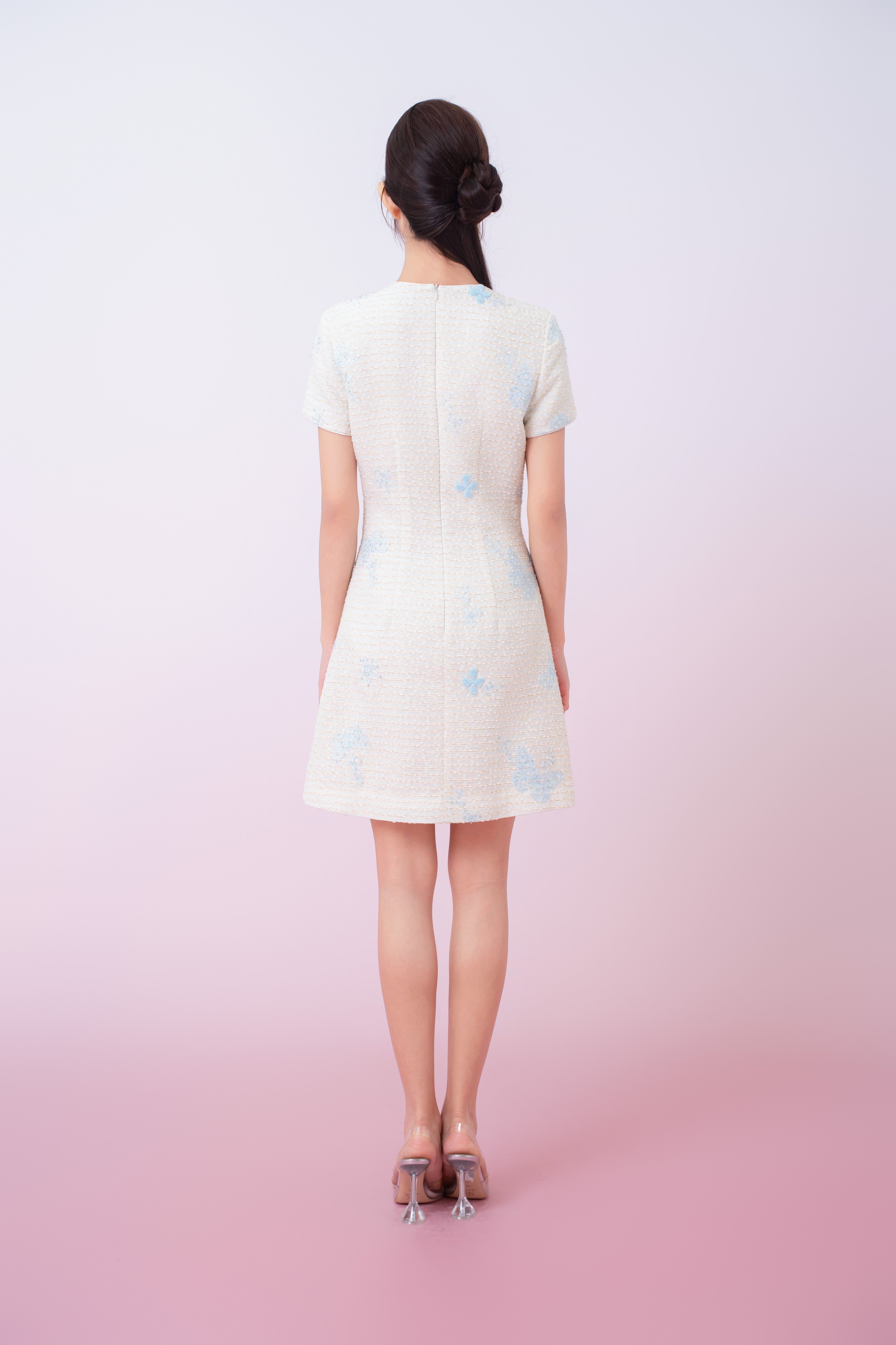 Kori Cream Tweed With Butterfly Embroidery Mini Cheongsam Dress